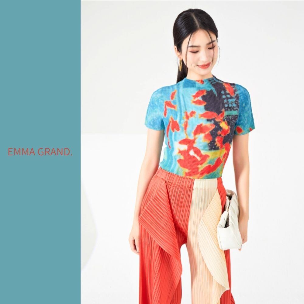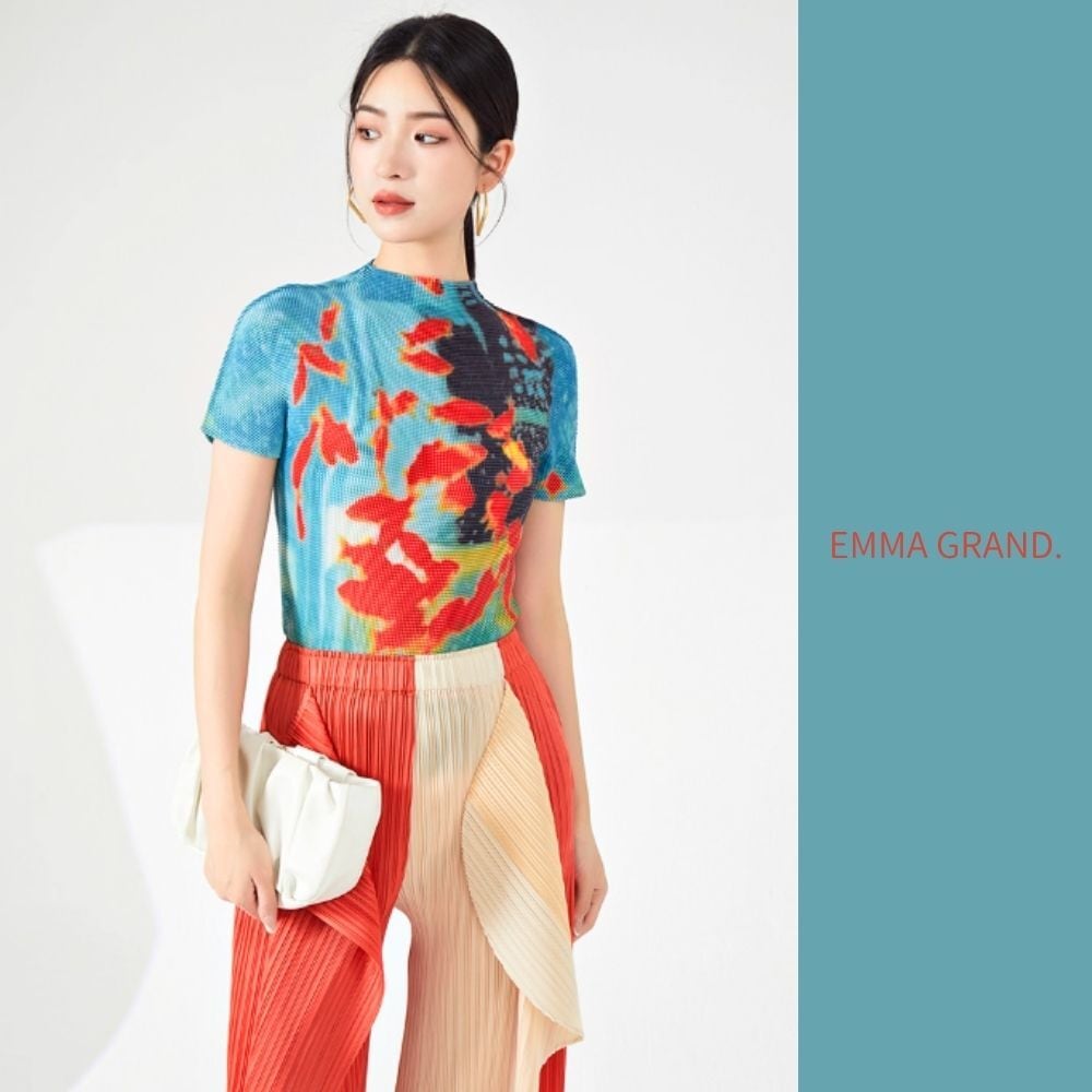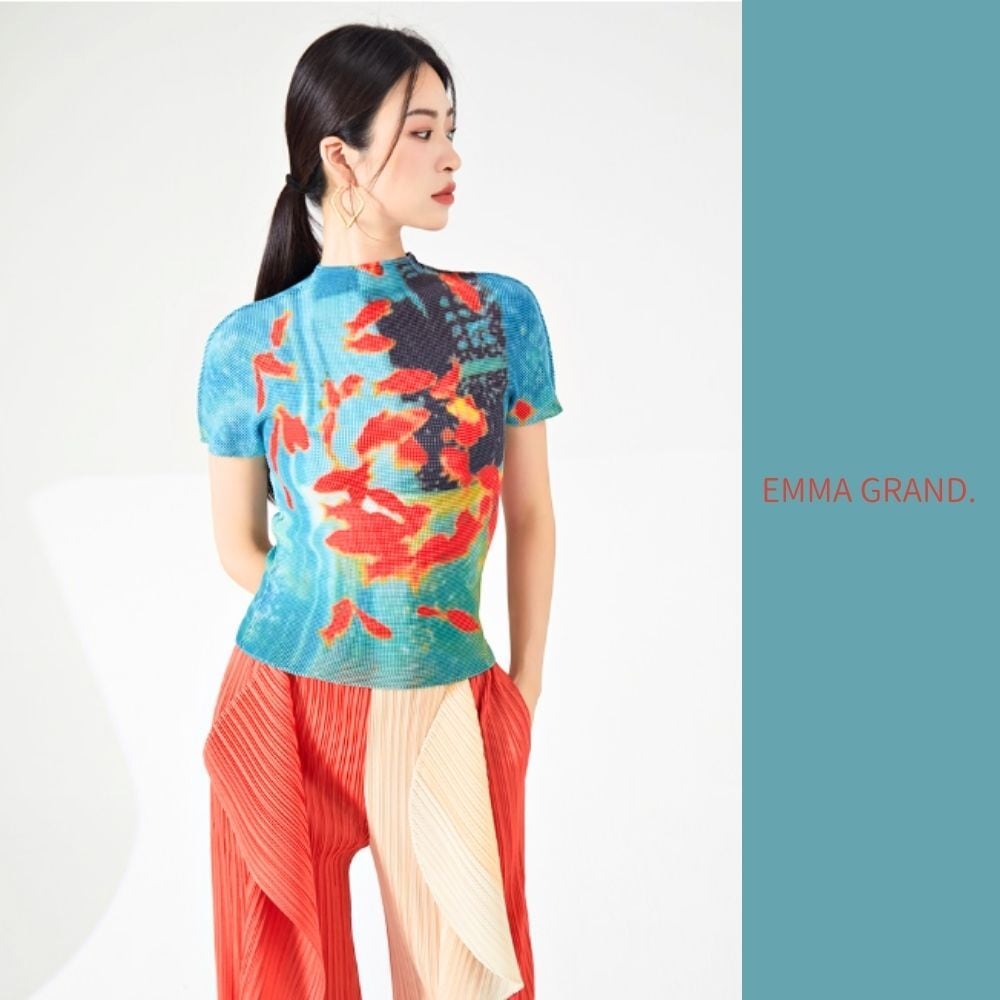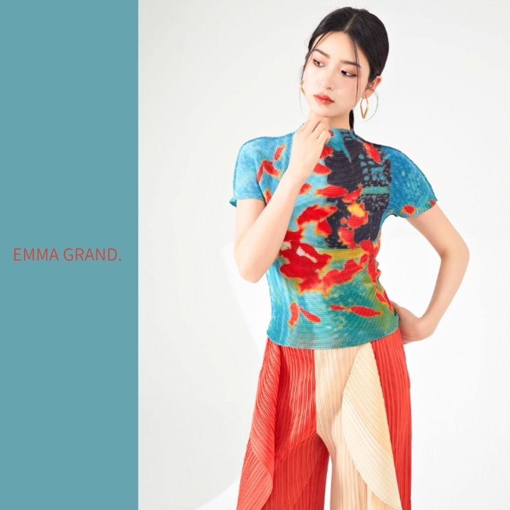 金魚が舞い泳ぐ、水中の世界をそのまま写し取ったようなトップス。
