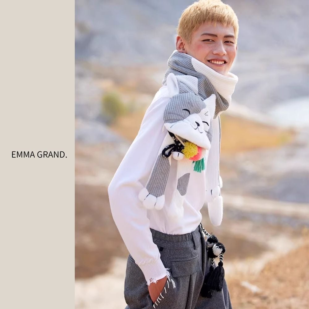 大きな瞳や立体的なお耳、ふわふわの手足まで表現されたデザインは、冬の装いに遊び心をプラスします。