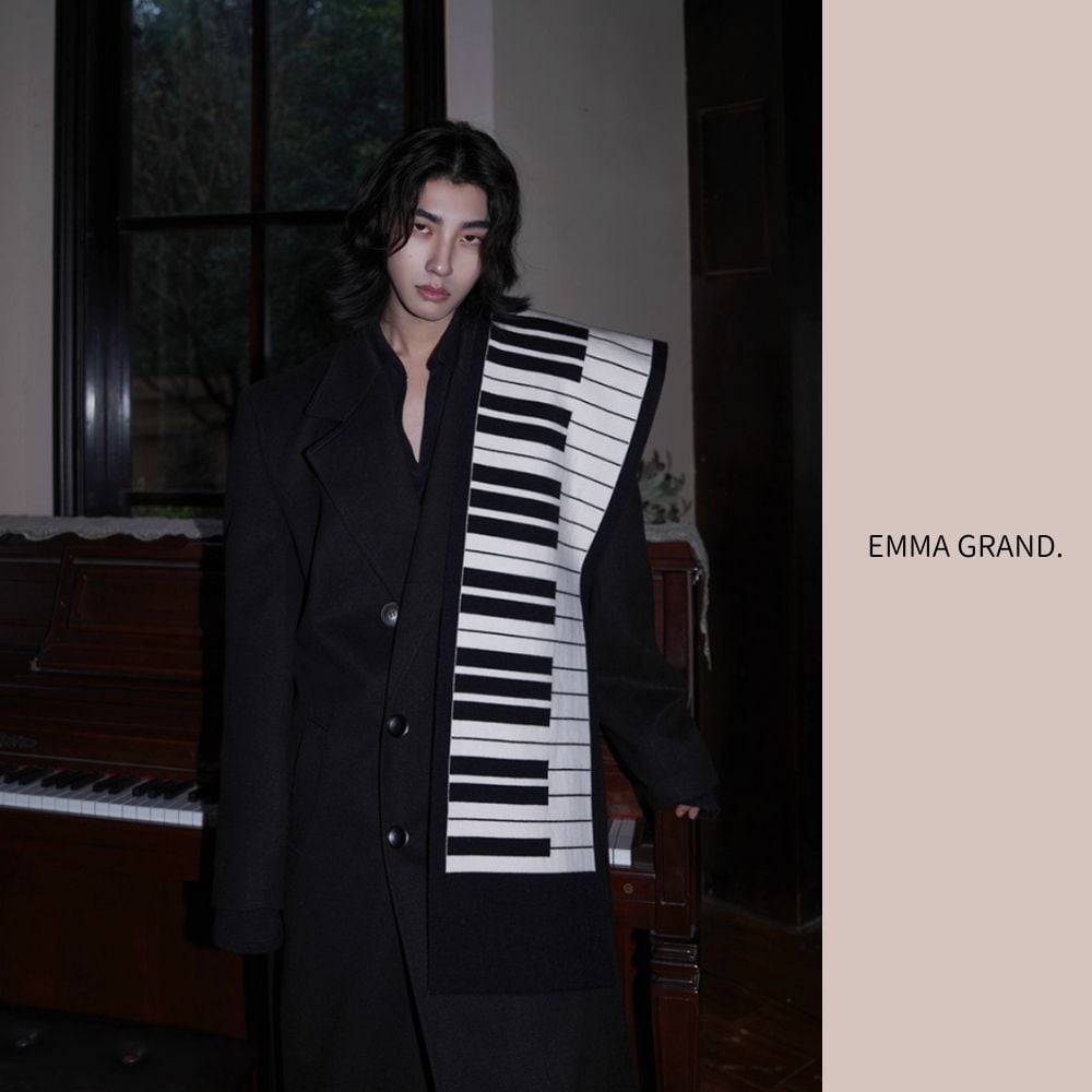 マフラー ピアノ 鍵盤 音楽 音符 メンズ レディース ユニセックス モード 個性派 冬小物 ロングマフラー