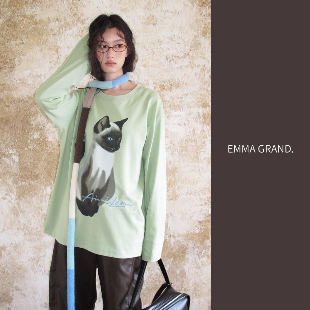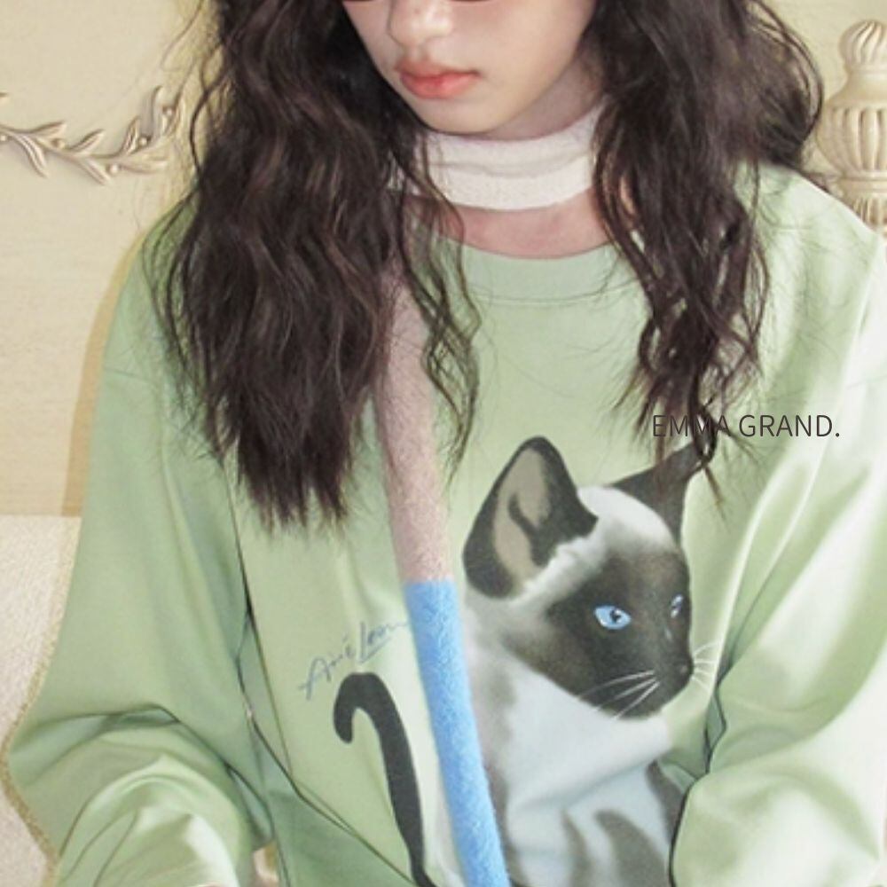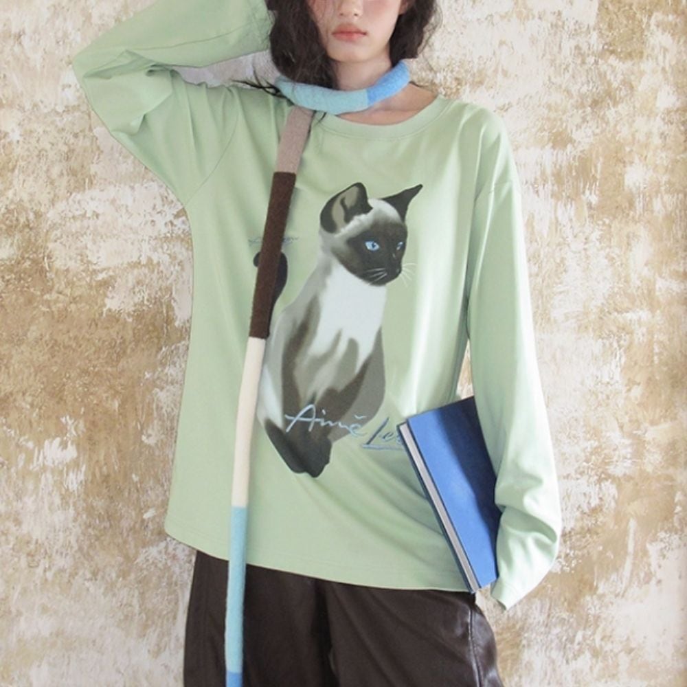 #猫トップス #シャム猫 #アニマルモチーフ #EMMAGRAND #ミントグリーン #ユニセックスファッション #幻想的