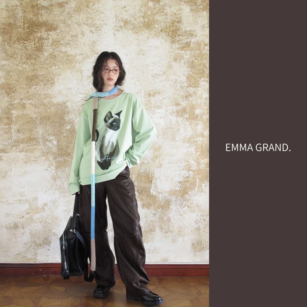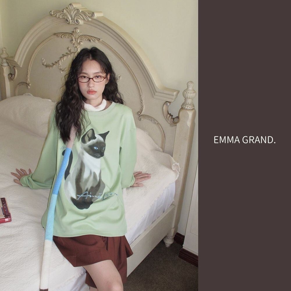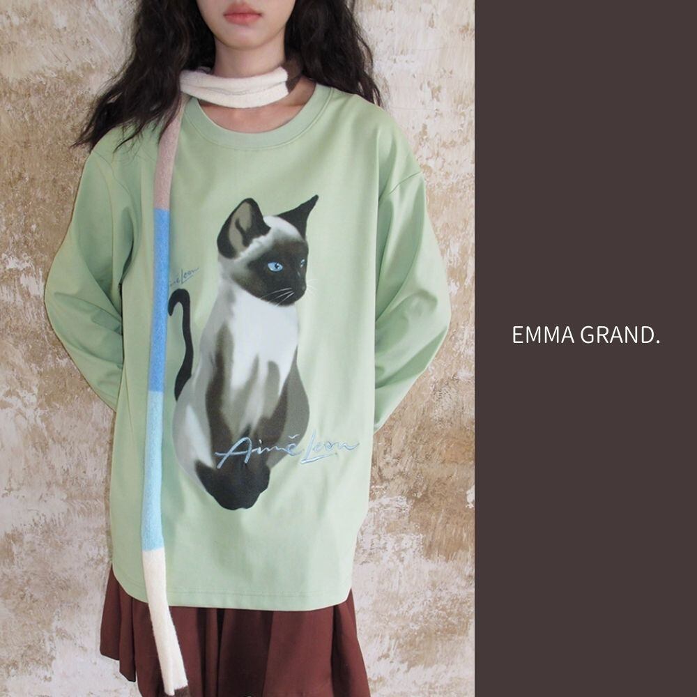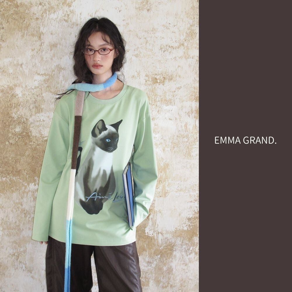 #猫トップス #シャム猫 #アニマルモチーフ #EMMAGRAND #ミントグリーン #ユニセックスファッション #幻想的