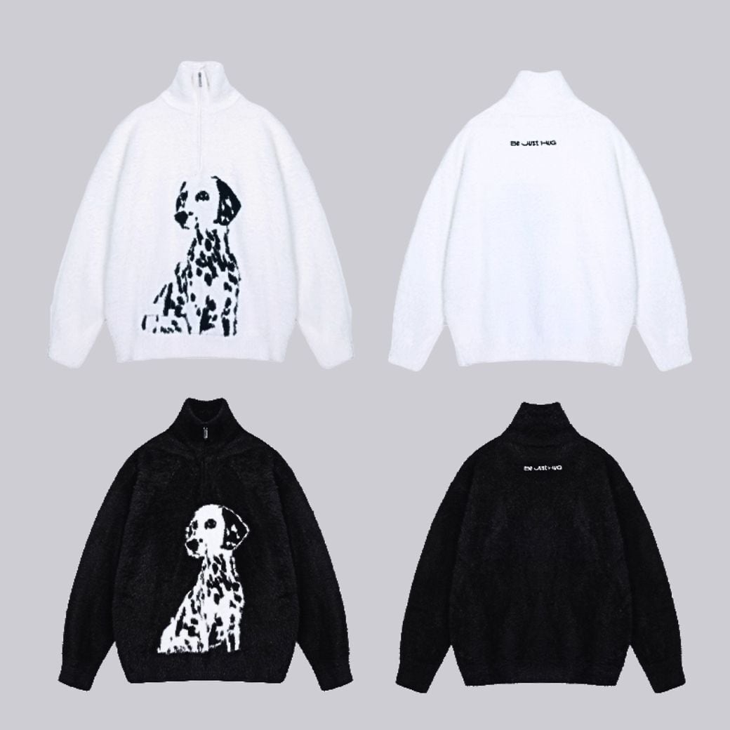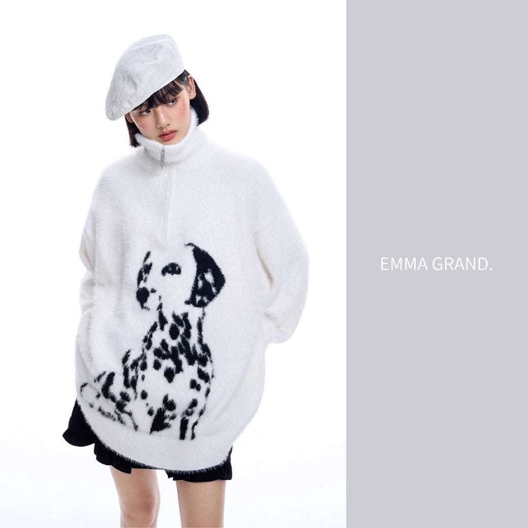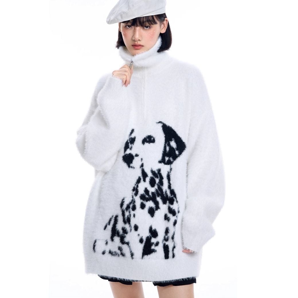 #EMMAGRAND #犬モチーフ #ダルメシアン #モヘアニット #アニマルファッション #冬コーデ #ふわもこニット #大人可愛い #アートニット #ファンタジーファッション