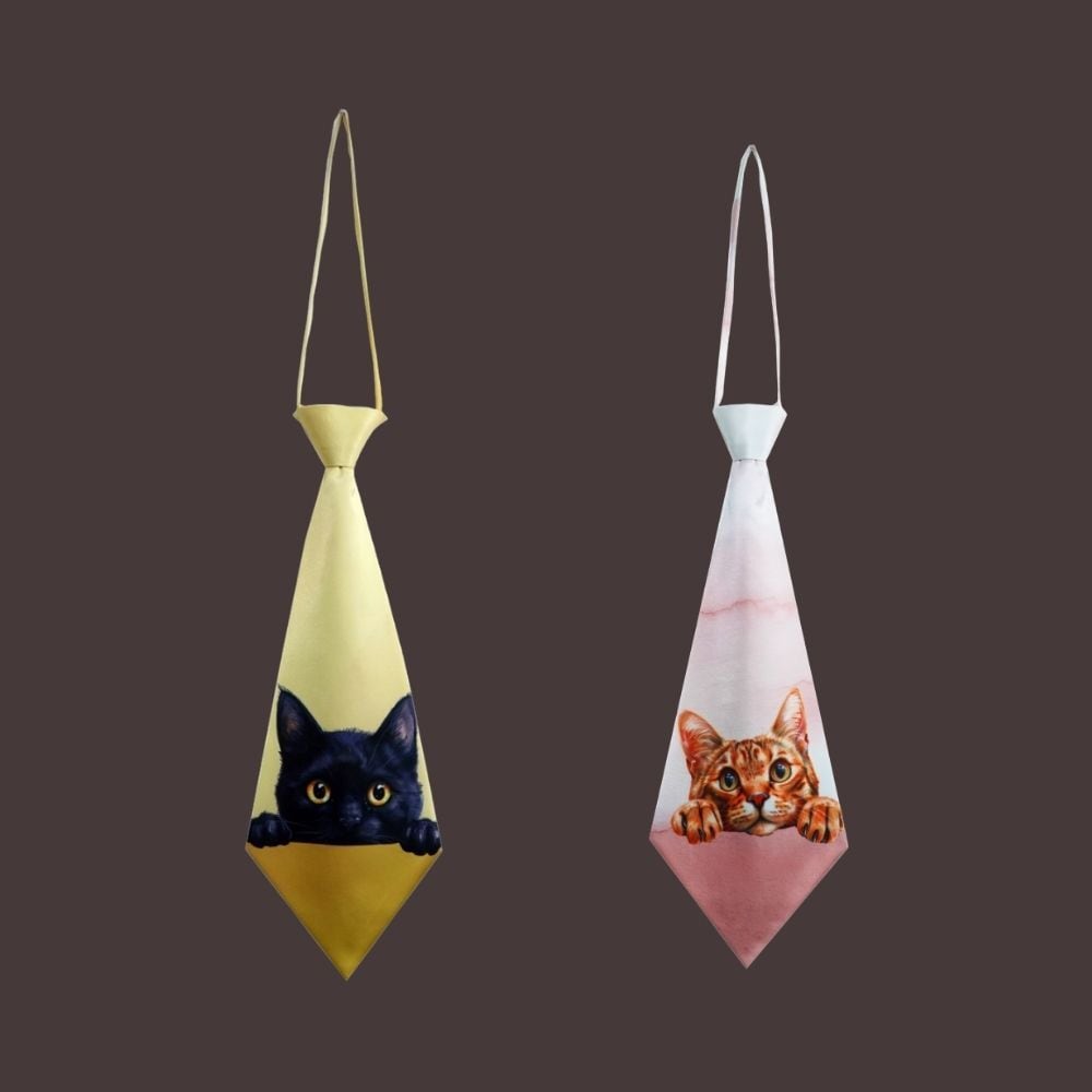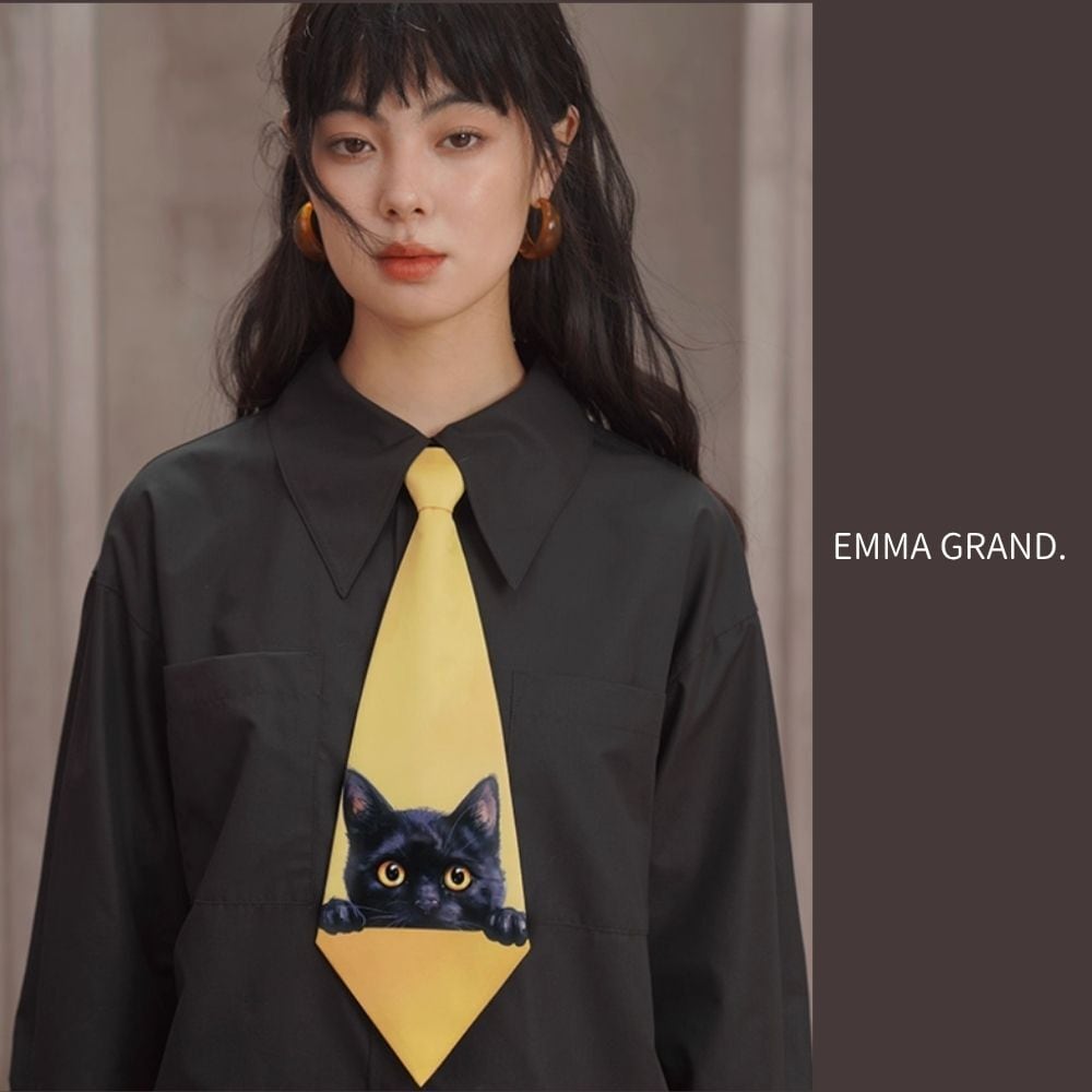 覗きこむ猫のタイ・イラストネクタイ E00609