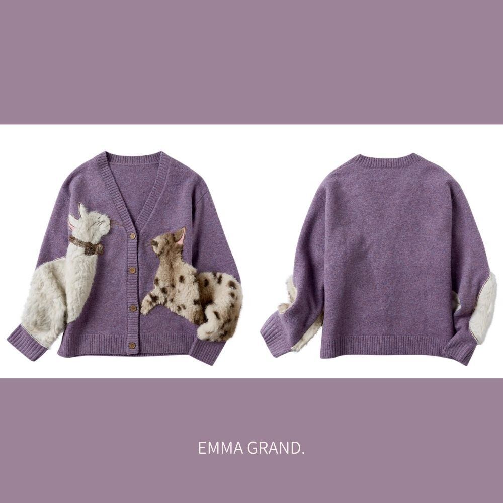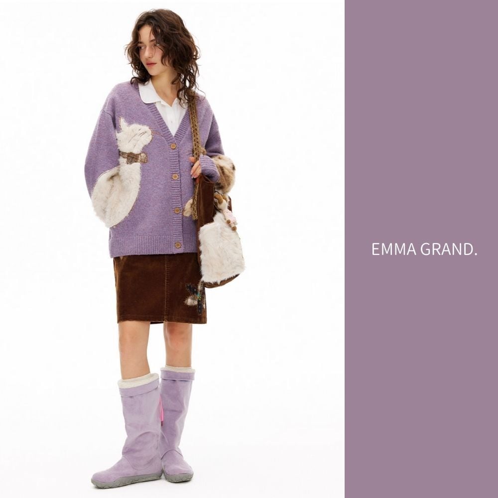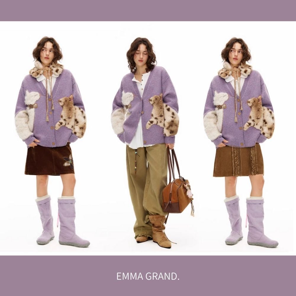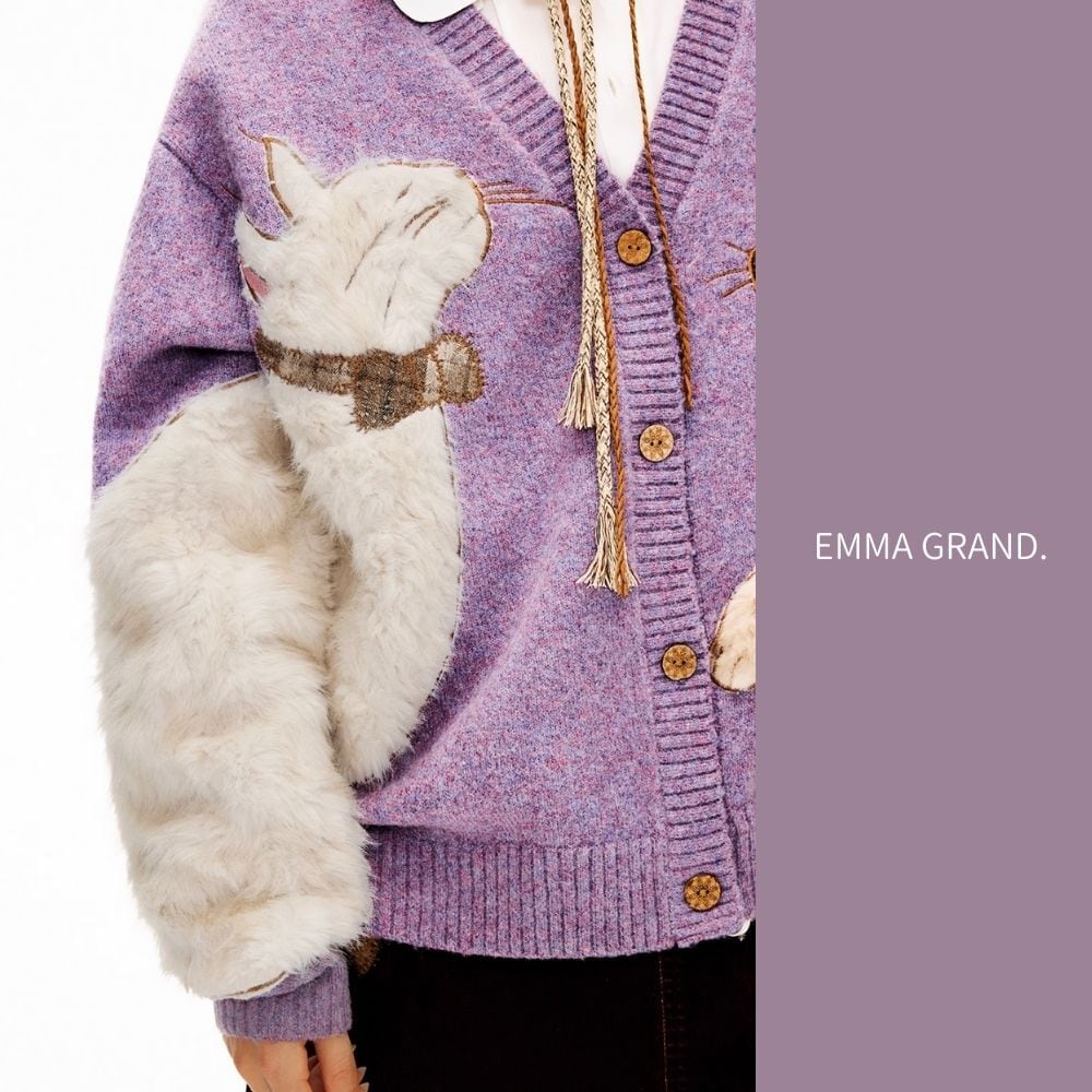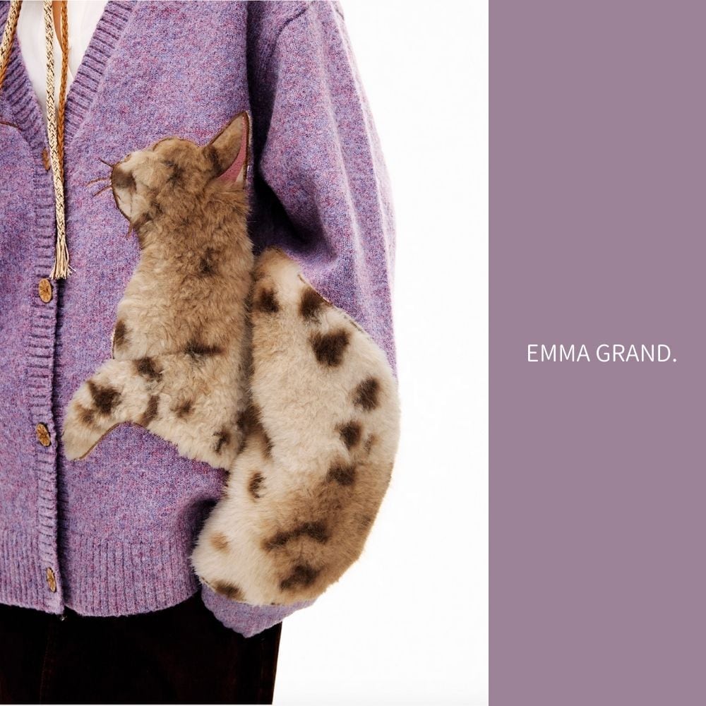 猫/ネコ/アニマル/カーディガン/ニット/冬コーデ/ふわもこ/立体モチーフ/EMMAGRAND