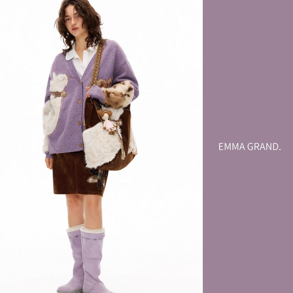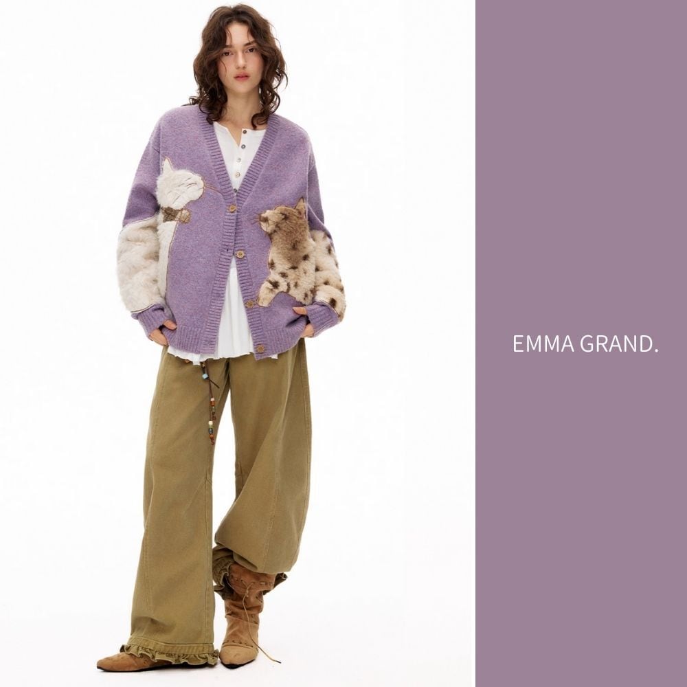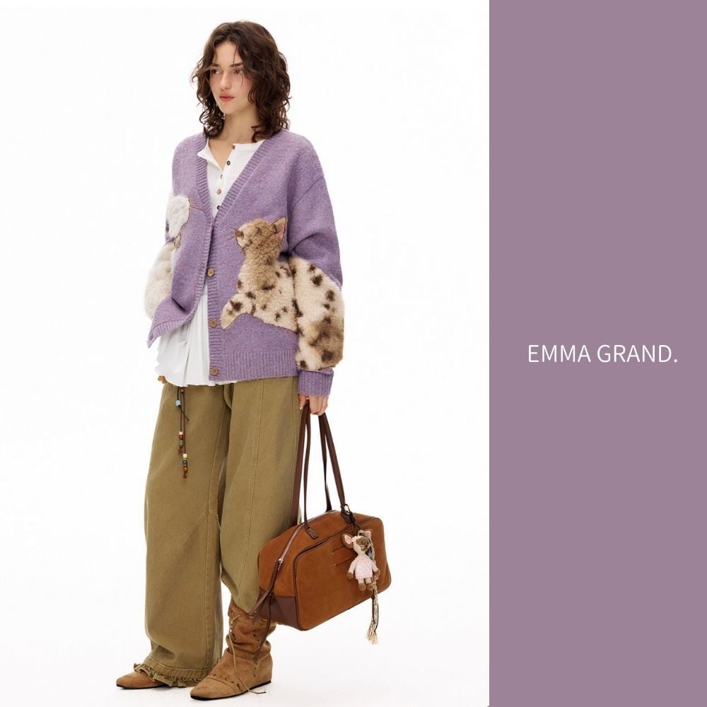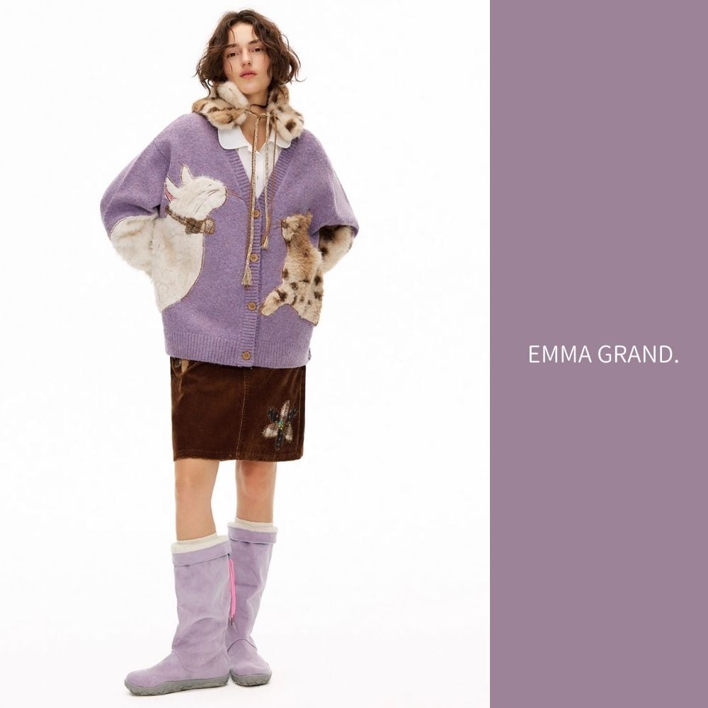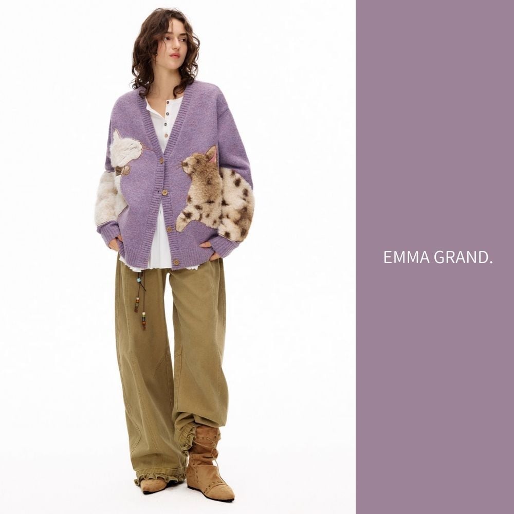 猫/ネコ/アニマル/カーディガン/ニット/冬コーデ/ふわもこ/立体モチーフ/EMMAGRAND