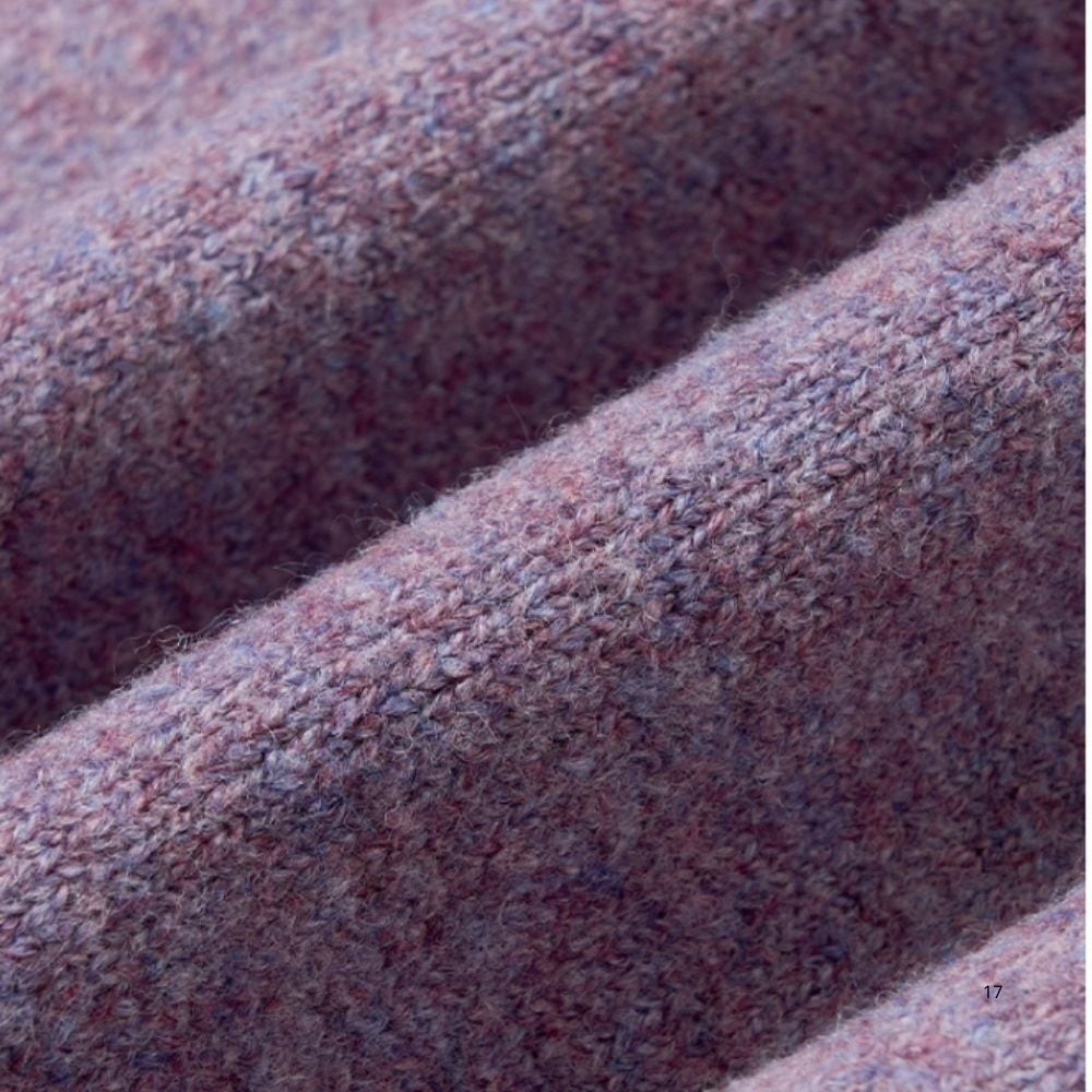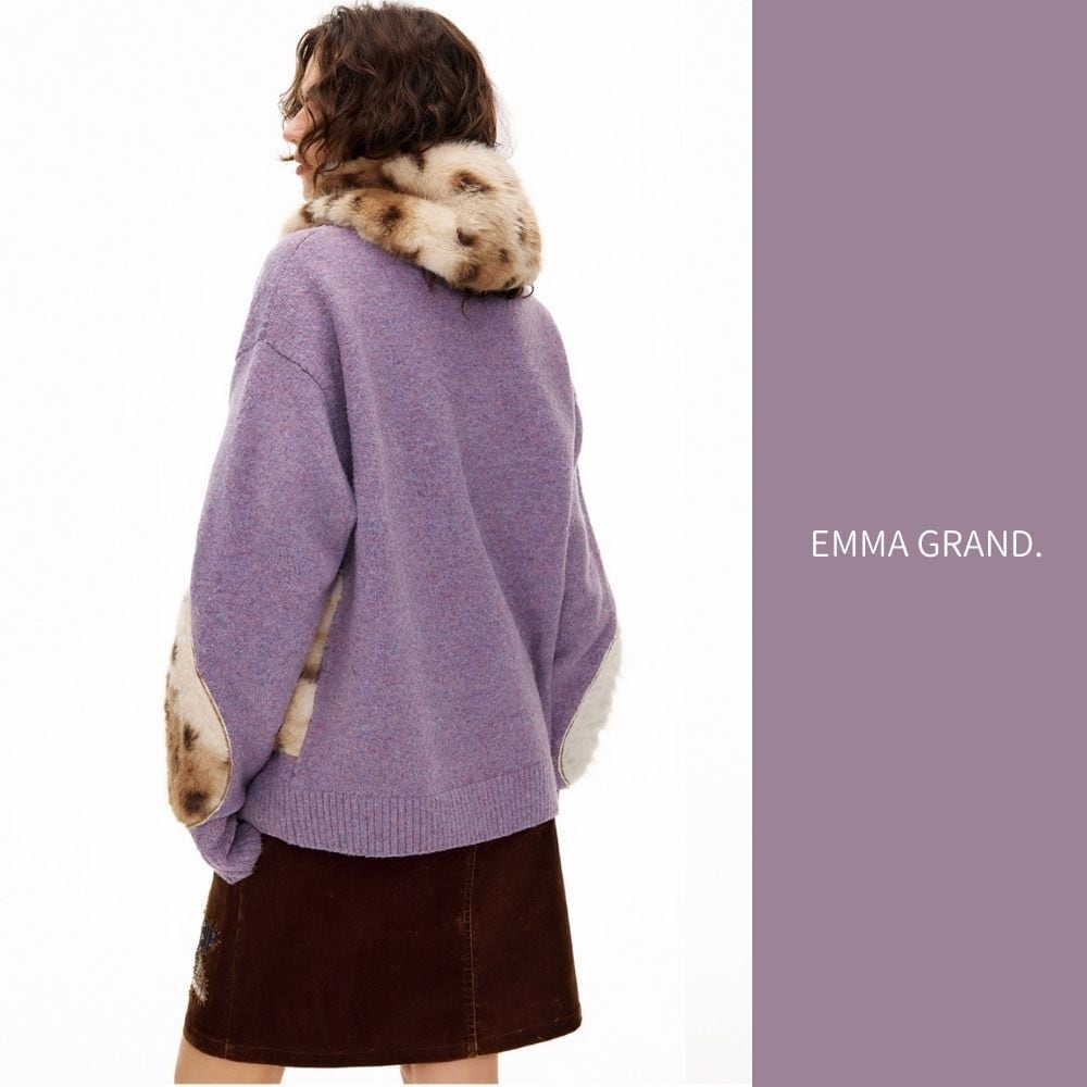 やわらかなラベンダー色のニットとファーの異素材ミックスは、寒い季節にぬくもりを運ぶ特別な一枚です。