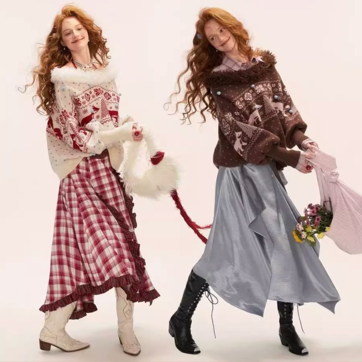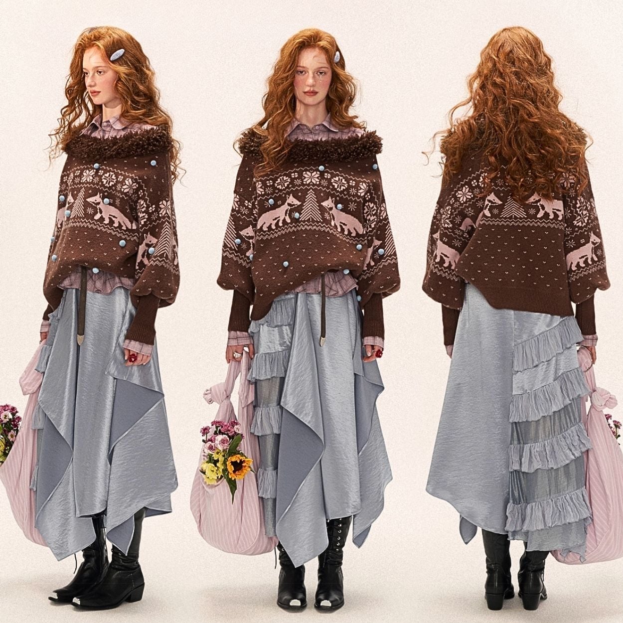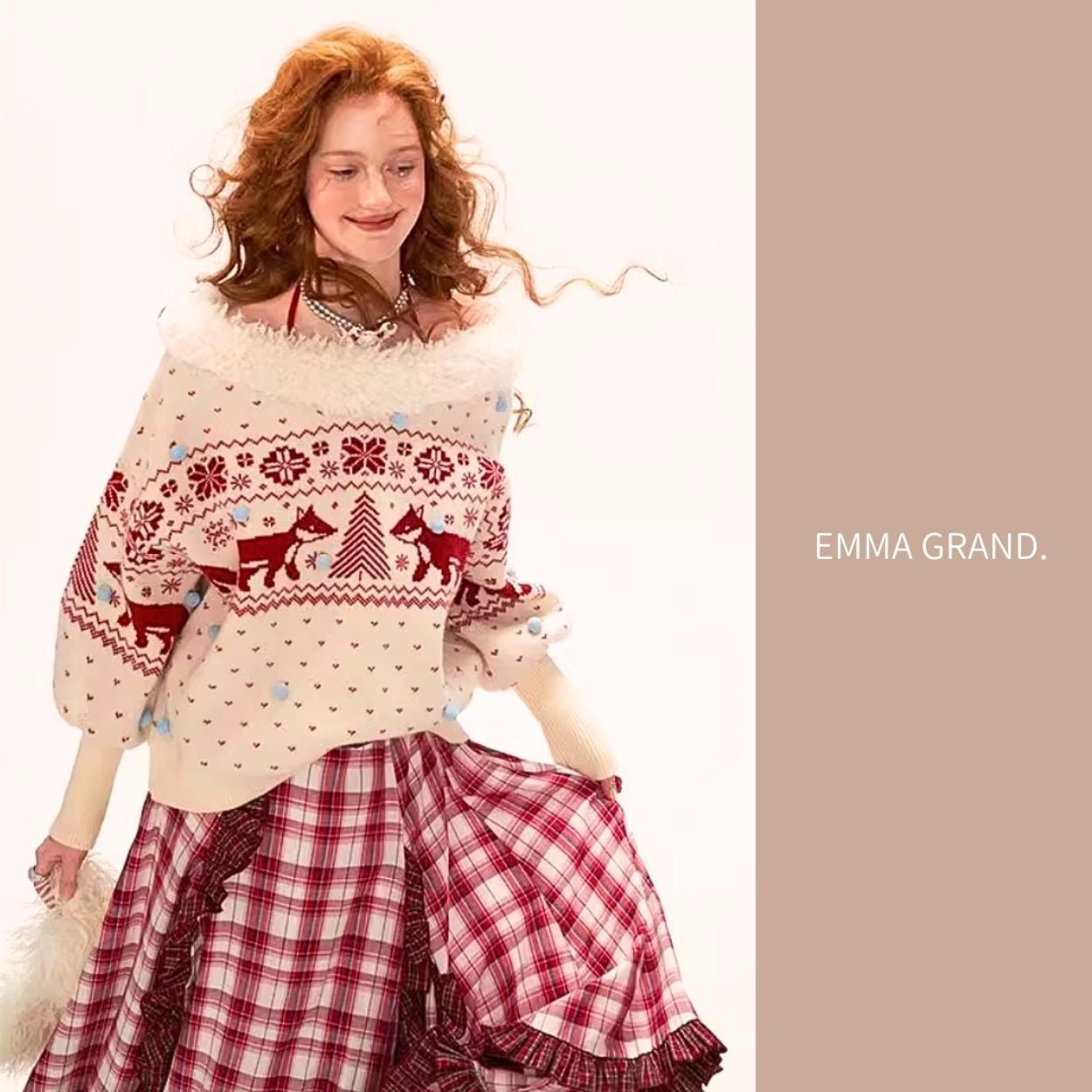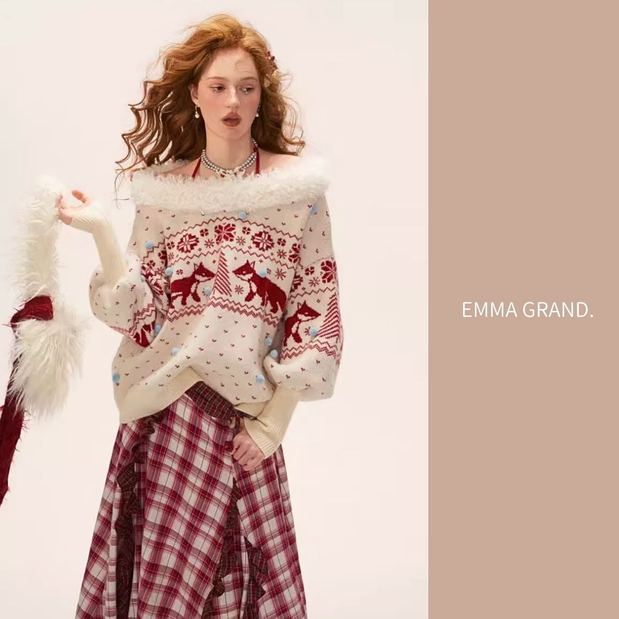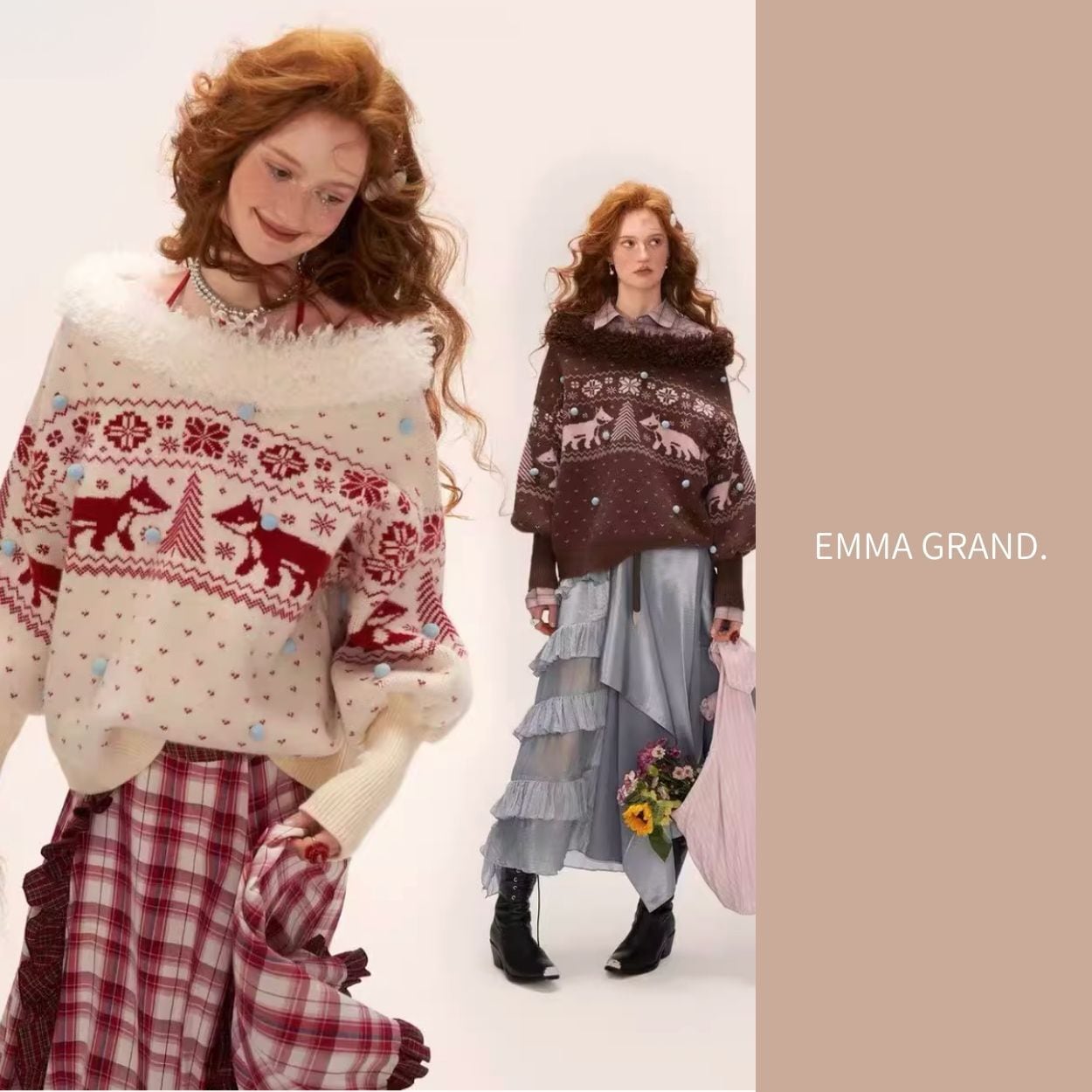 キツネニット/冬ニットトップス/ノルディック柄/フェアリーニット/ゆったりシルエット/EMMAGRAND