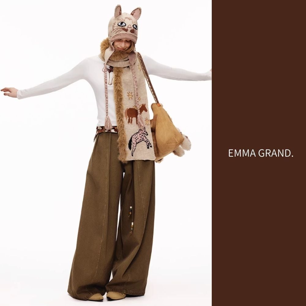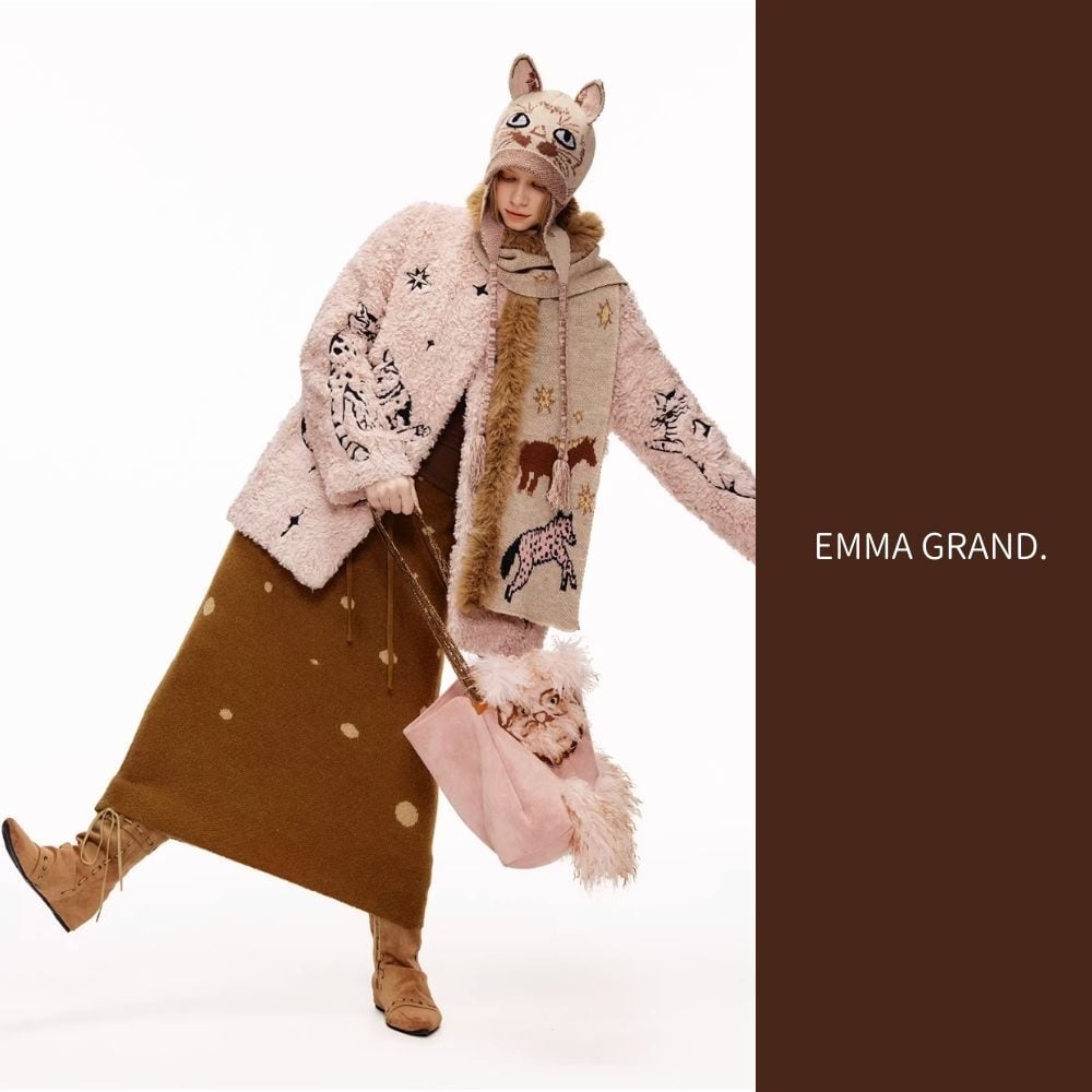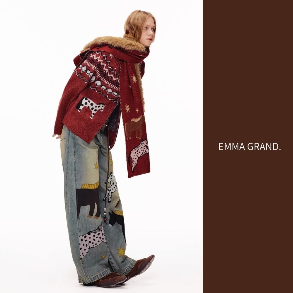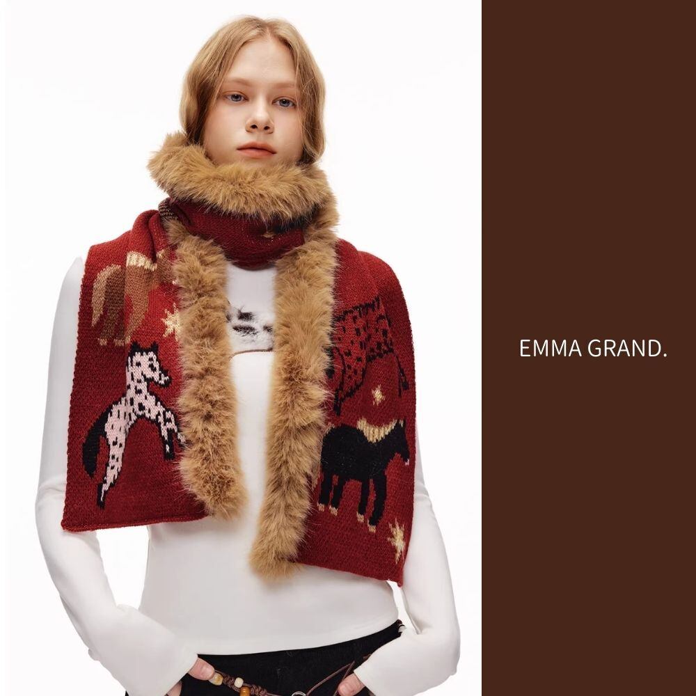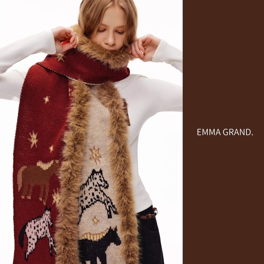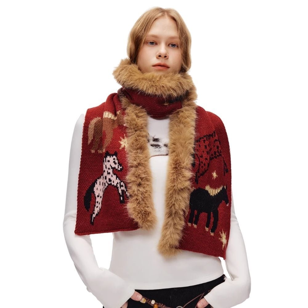 馬モチーフスカーフ/アートニット/ファースカーフ/銀河モチーフ/冬小物/EMMAGRAND
