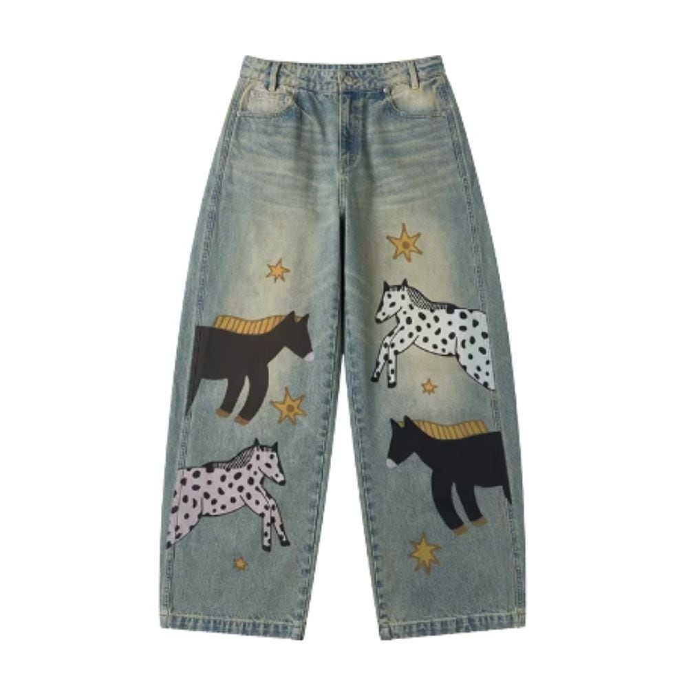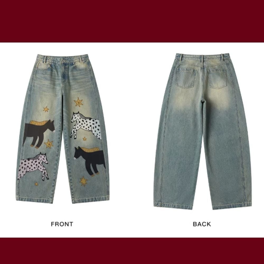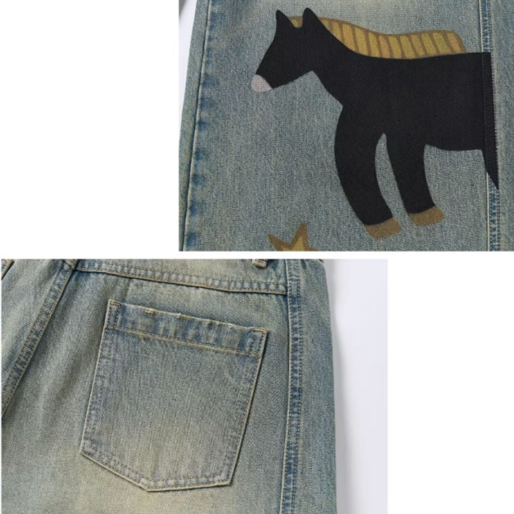 星降る草原を歩く、馬たちのデニムパンツ E00627