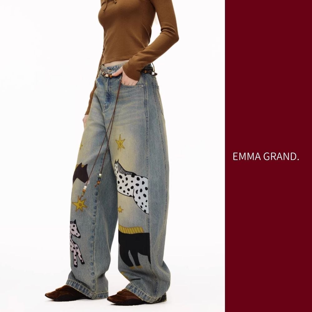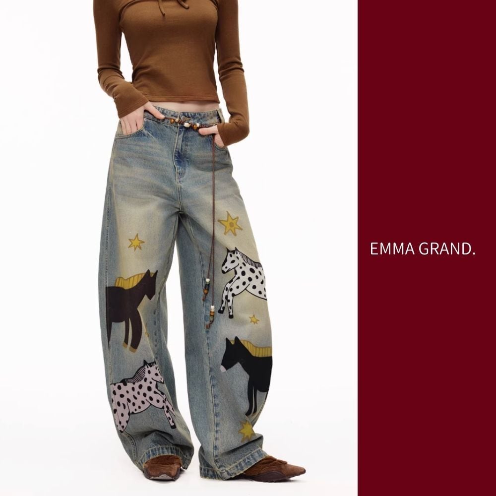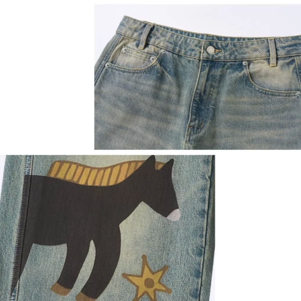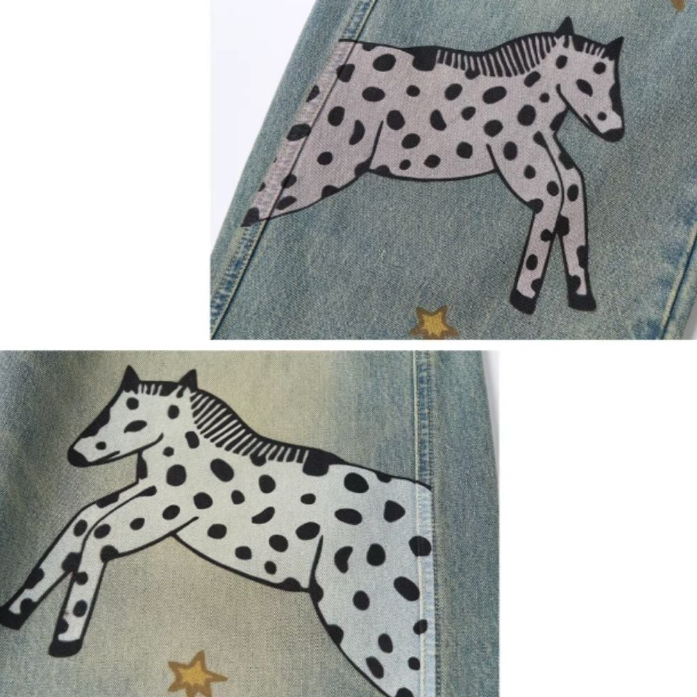 星降る草原を歩く、馬たちのデニムパンツ E00627