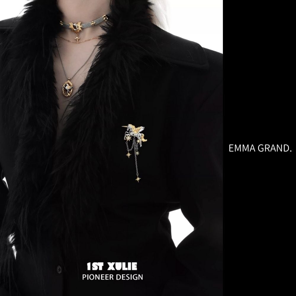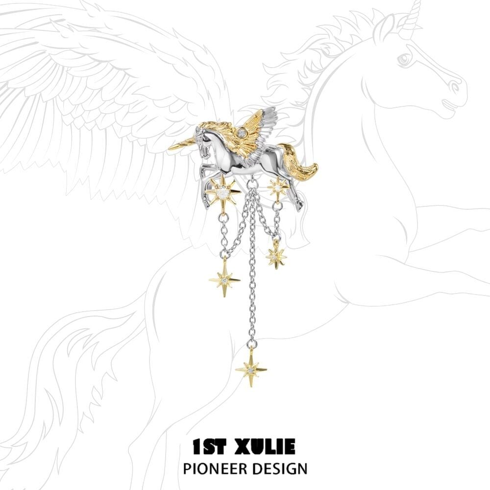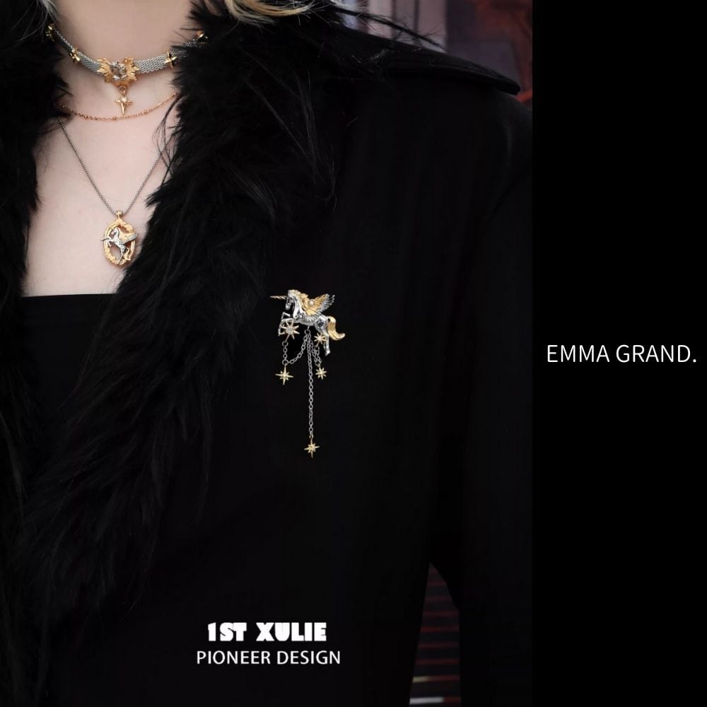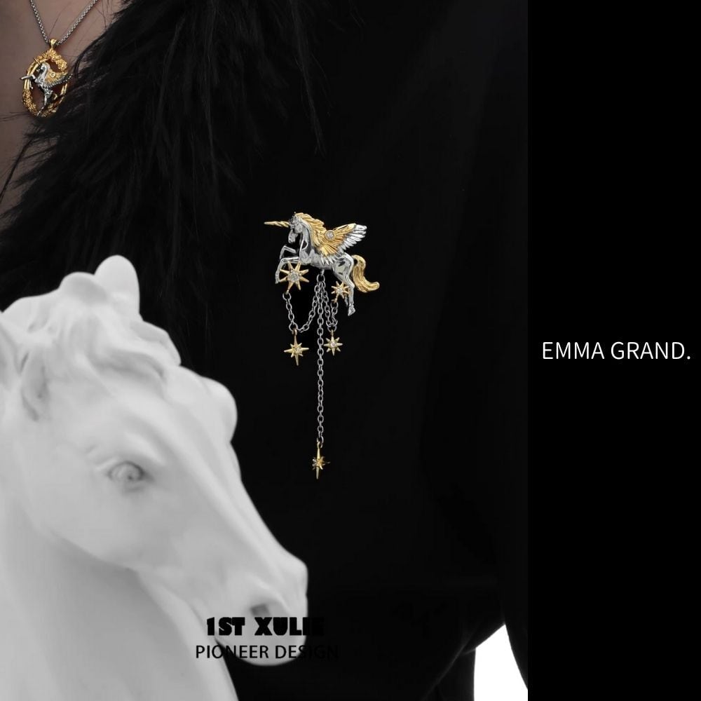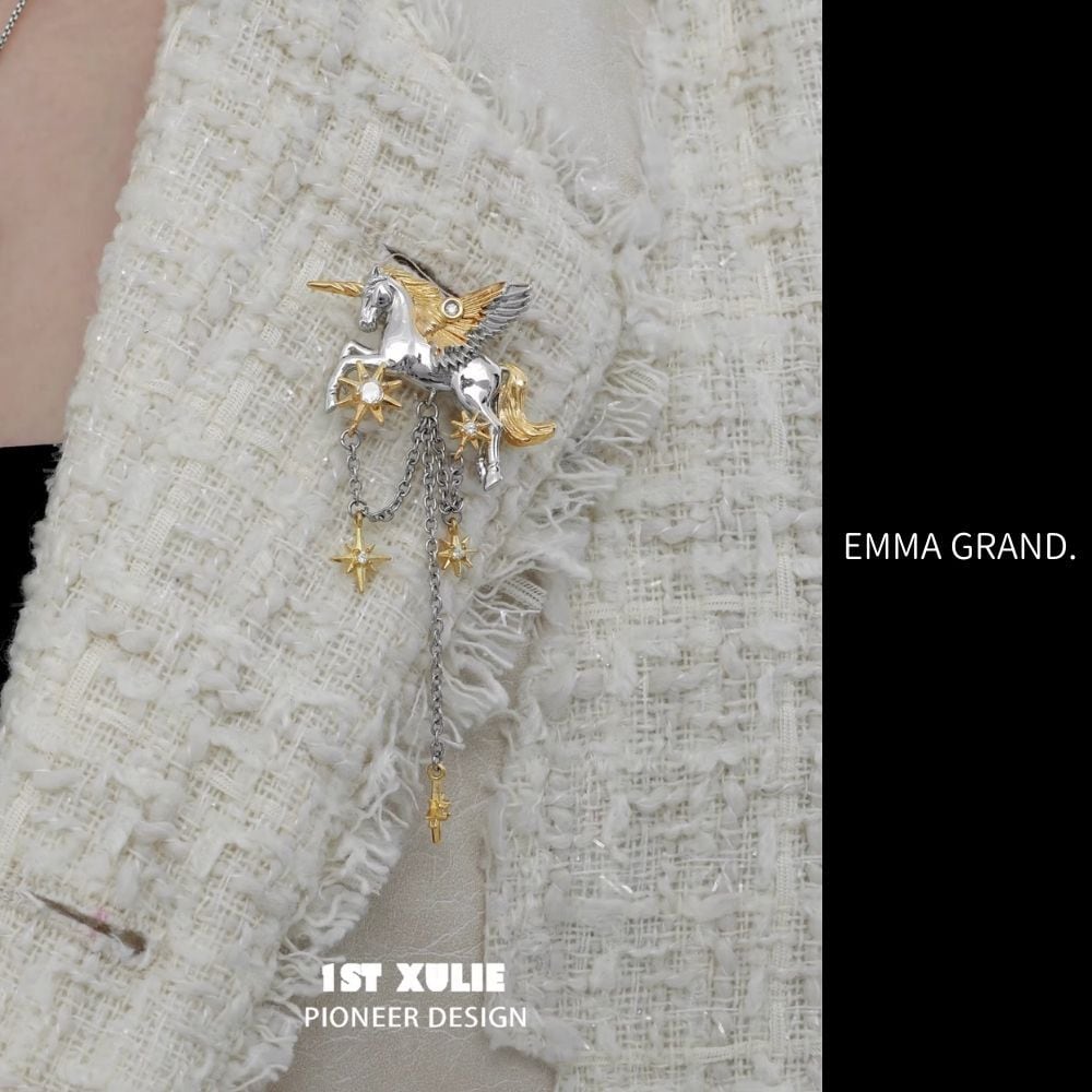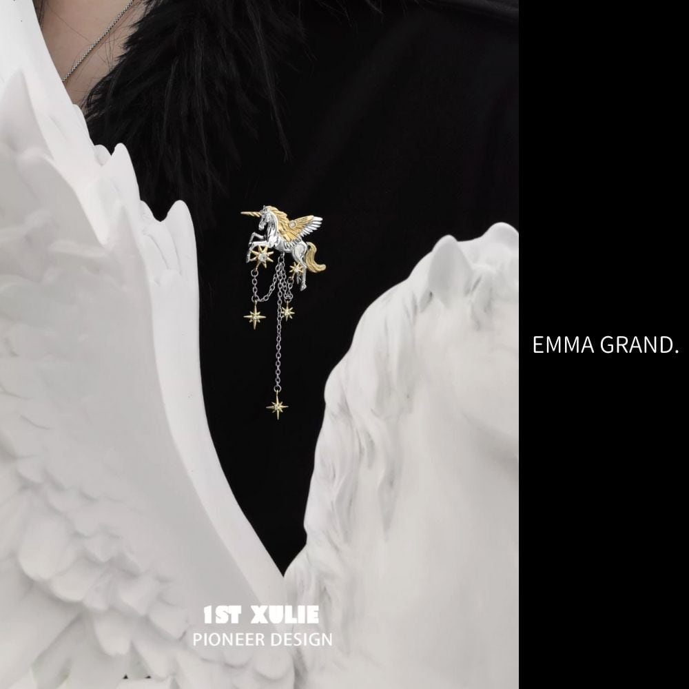 ペガサス ブローチ / 星モチーフアクセサリー / 幻想アクセサリー / 神話モチーフ / ゴールドシルバーアクセ / EMMAGRAND
