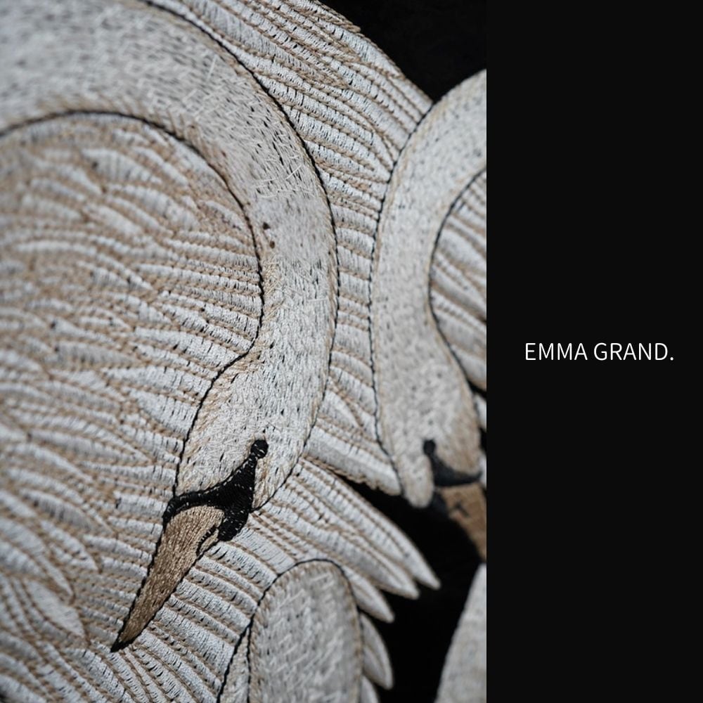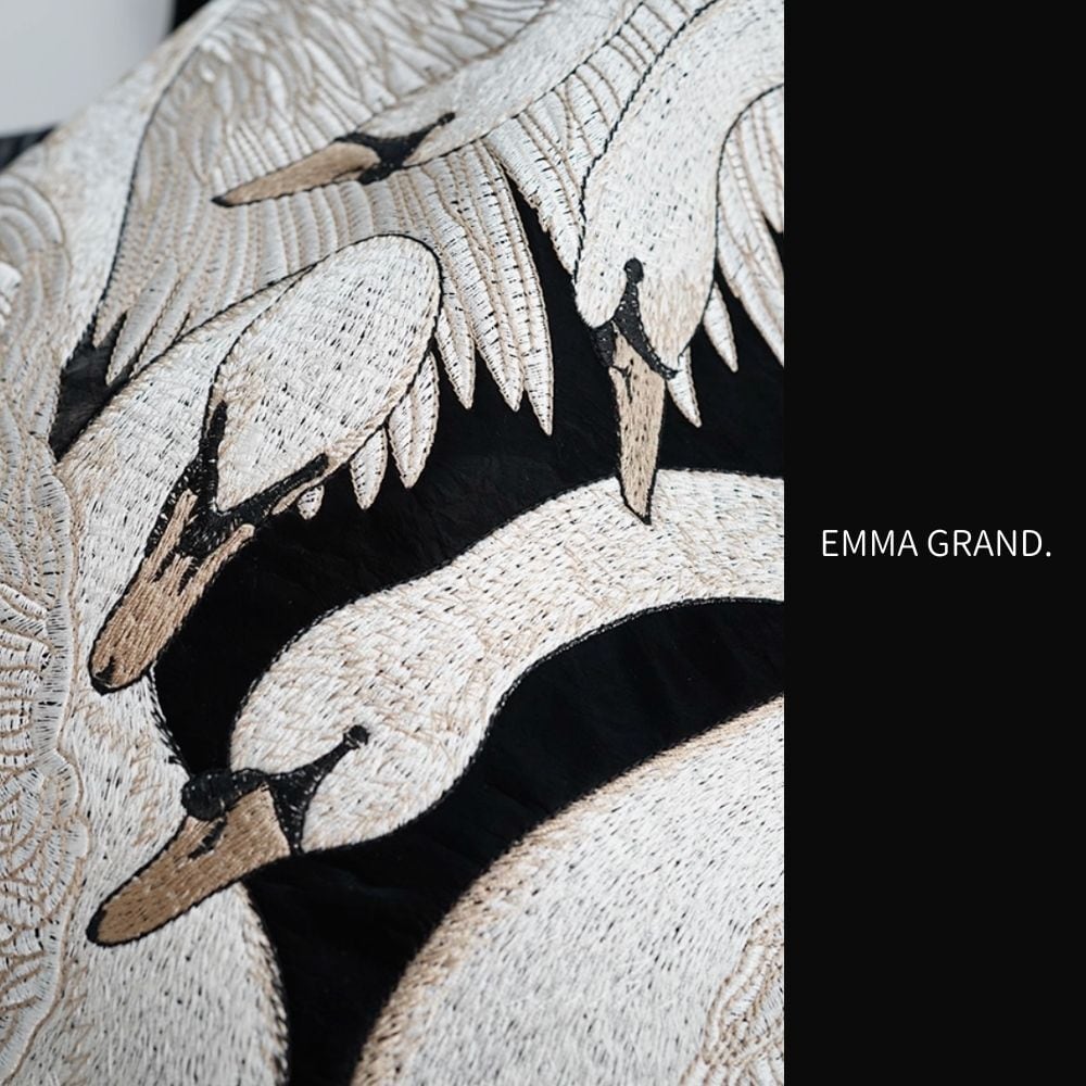白鳥の羽一本一本まで表現された高密度刺繍を採用。