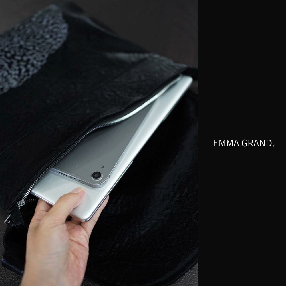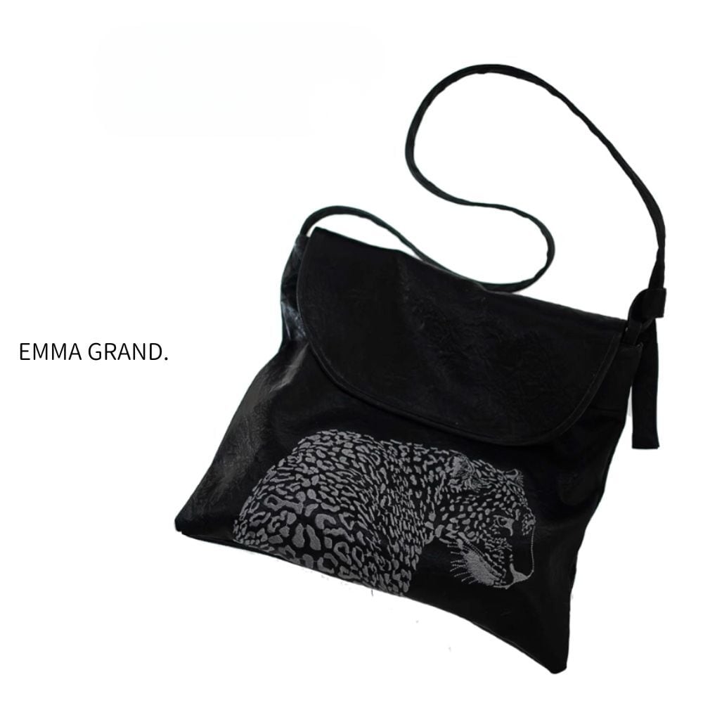 静かに獲物を見据える黒豹の姿を刺繍で描いたショルダーバッグ。