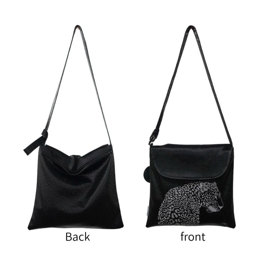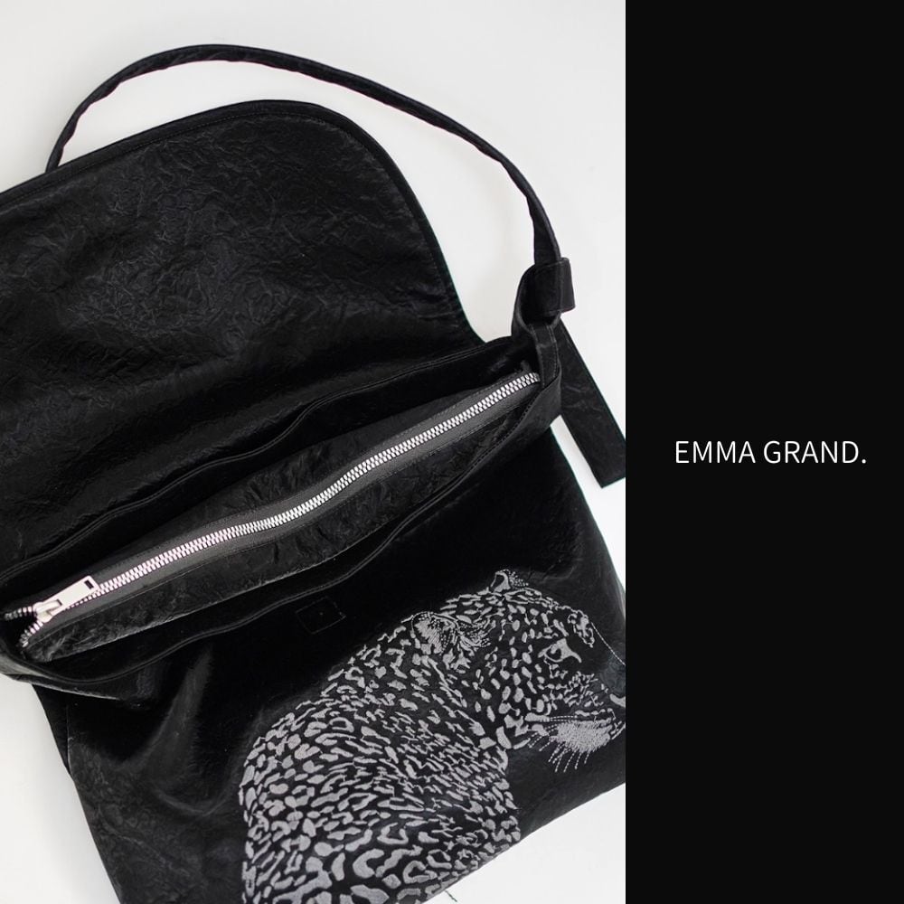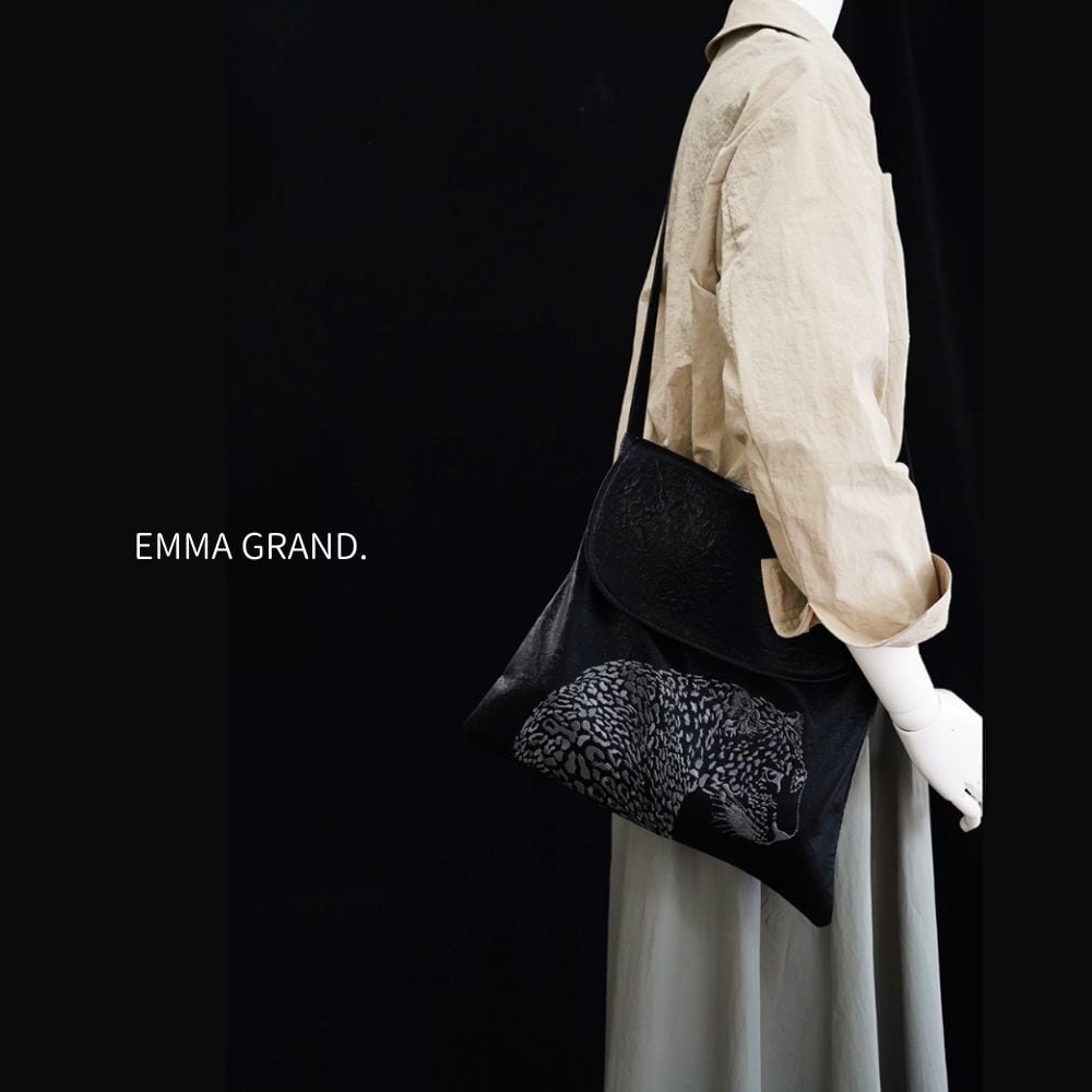 夜を忍び歩く黒豹の刺繍ショルダーバッグ E00640