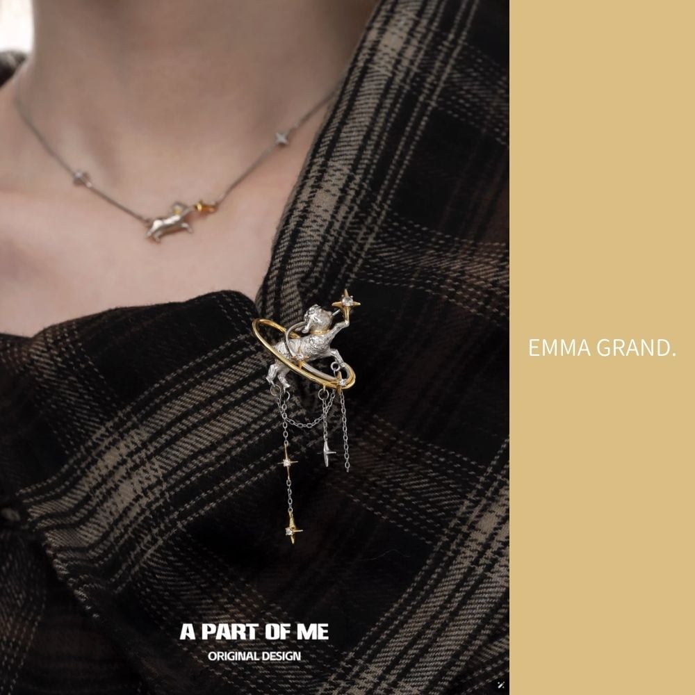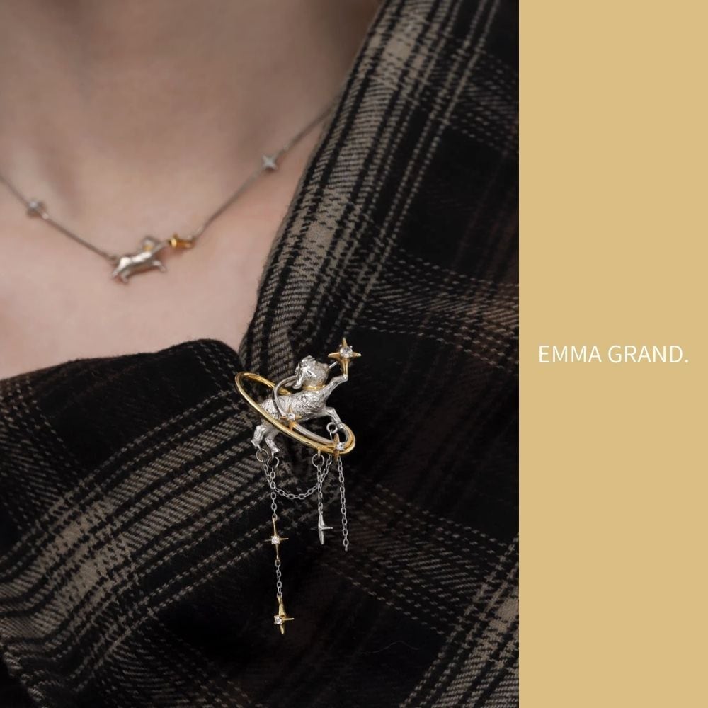 山羊モチーフ/星モチーフ/ブローチ/揺れるアクセサリー/星座シリーズ/物語を纏う/EMMAGRAND