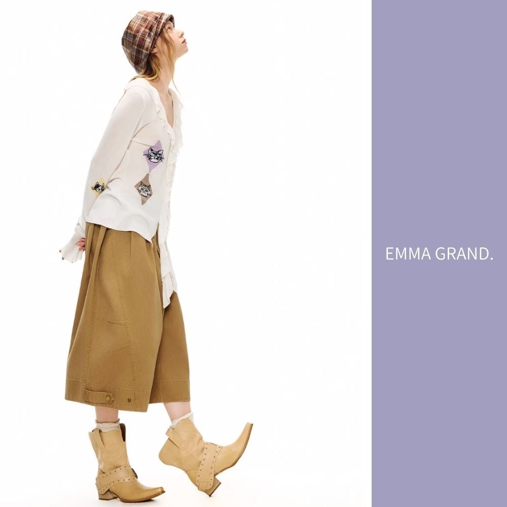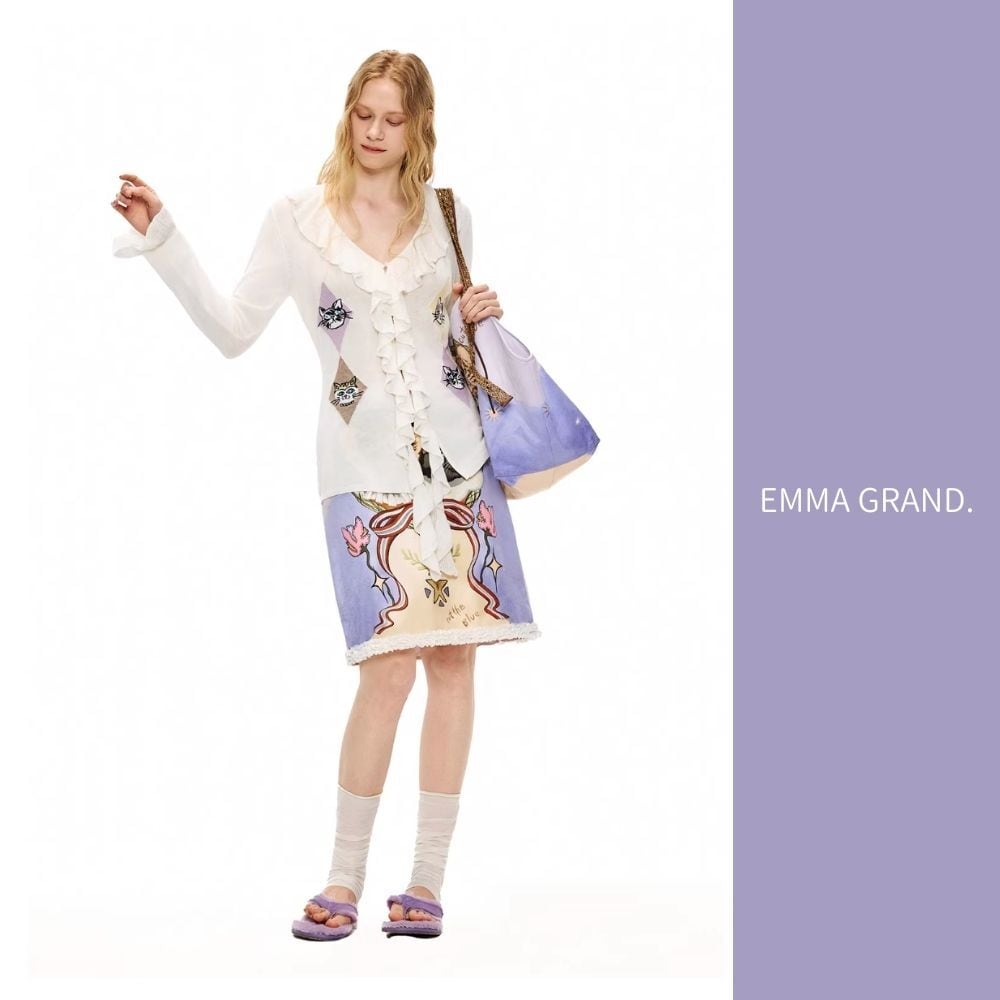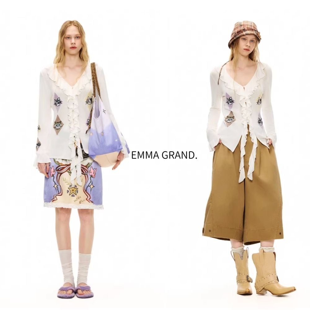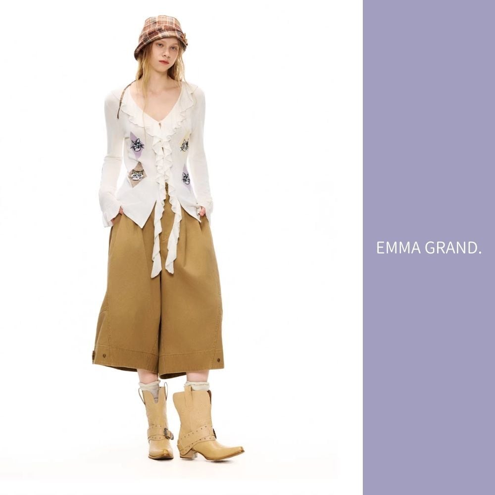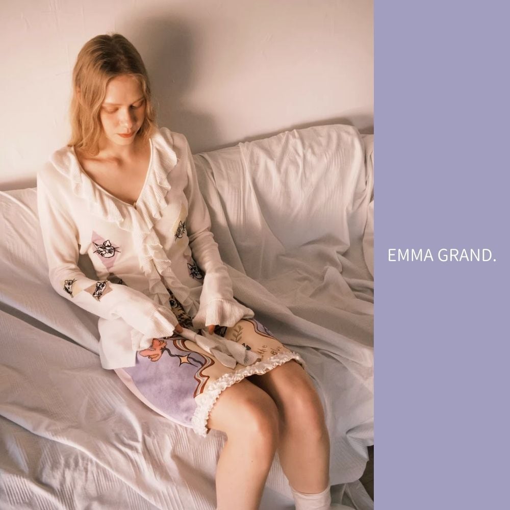 EMMAGRAND 猫 ニット 猫刺繍 カーディガン フリルニット リボンニット アーガイル 猫モチーフ 大人可愛い 春トップス