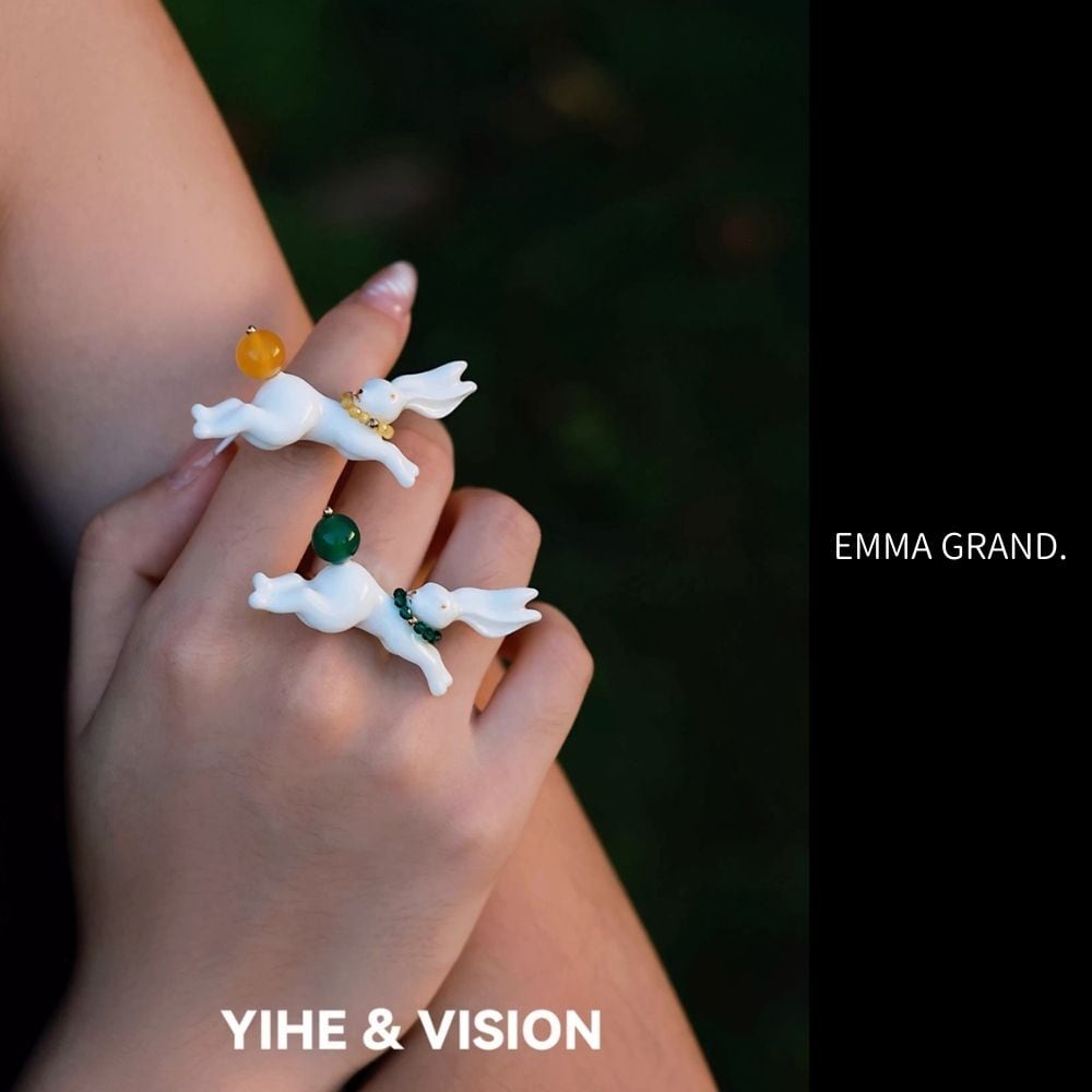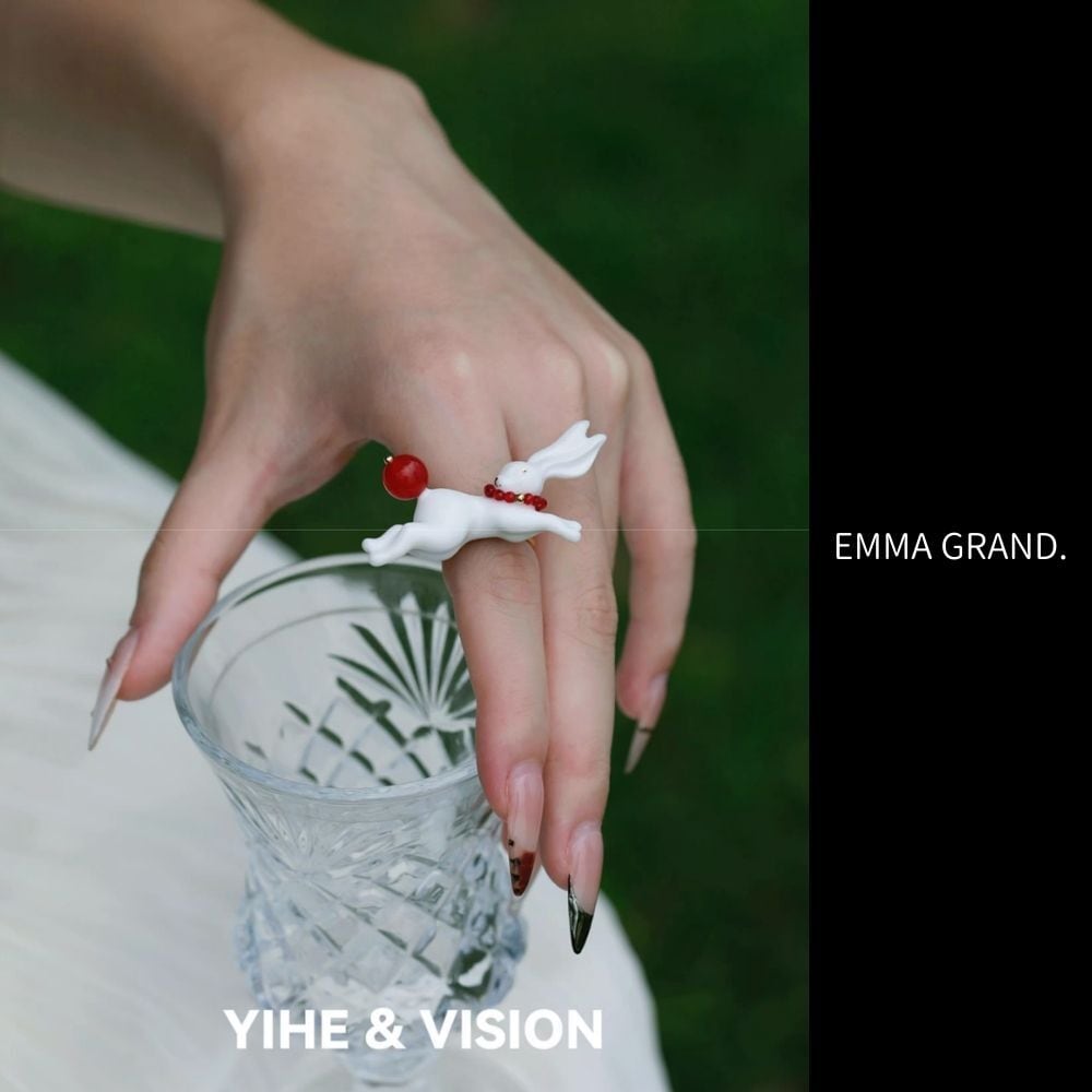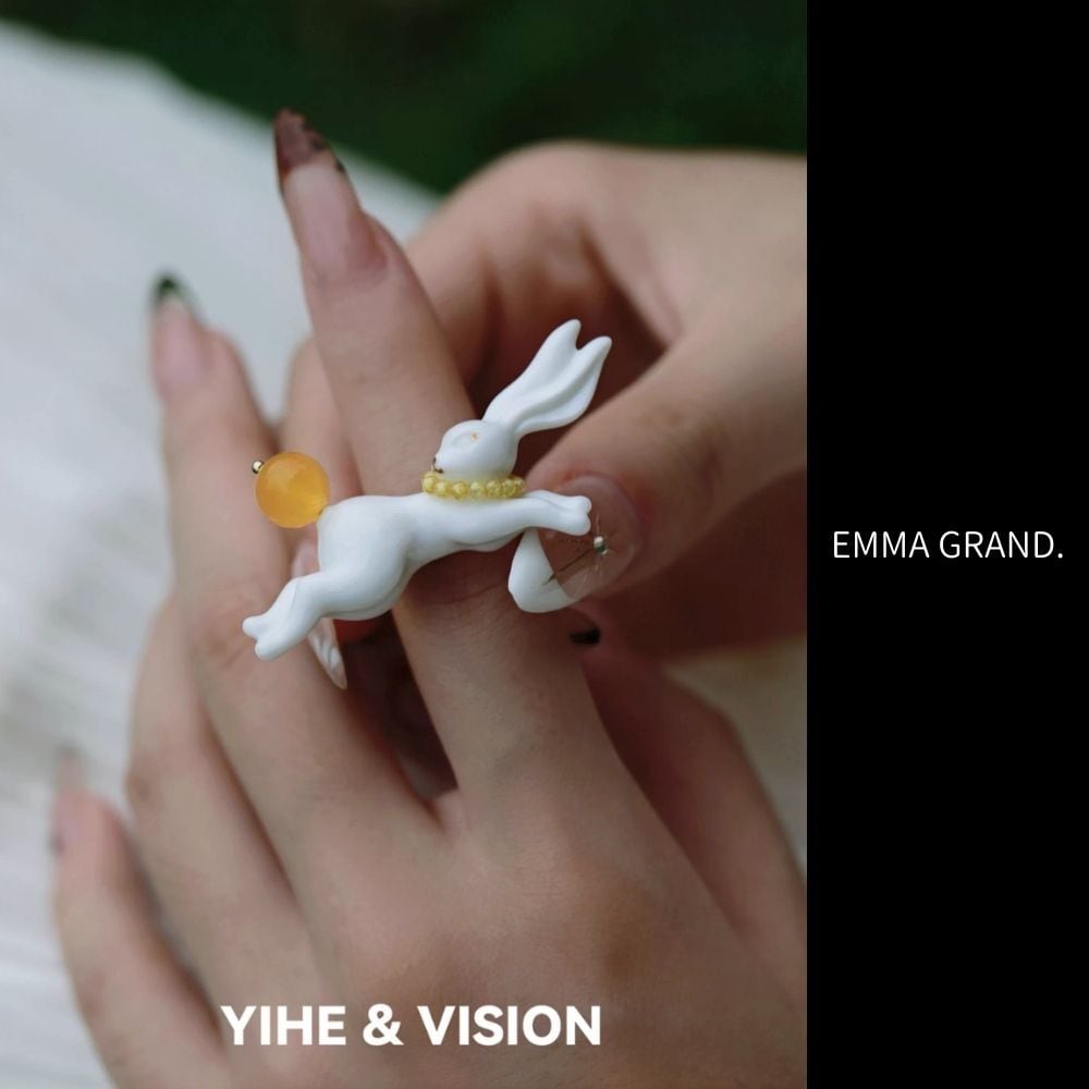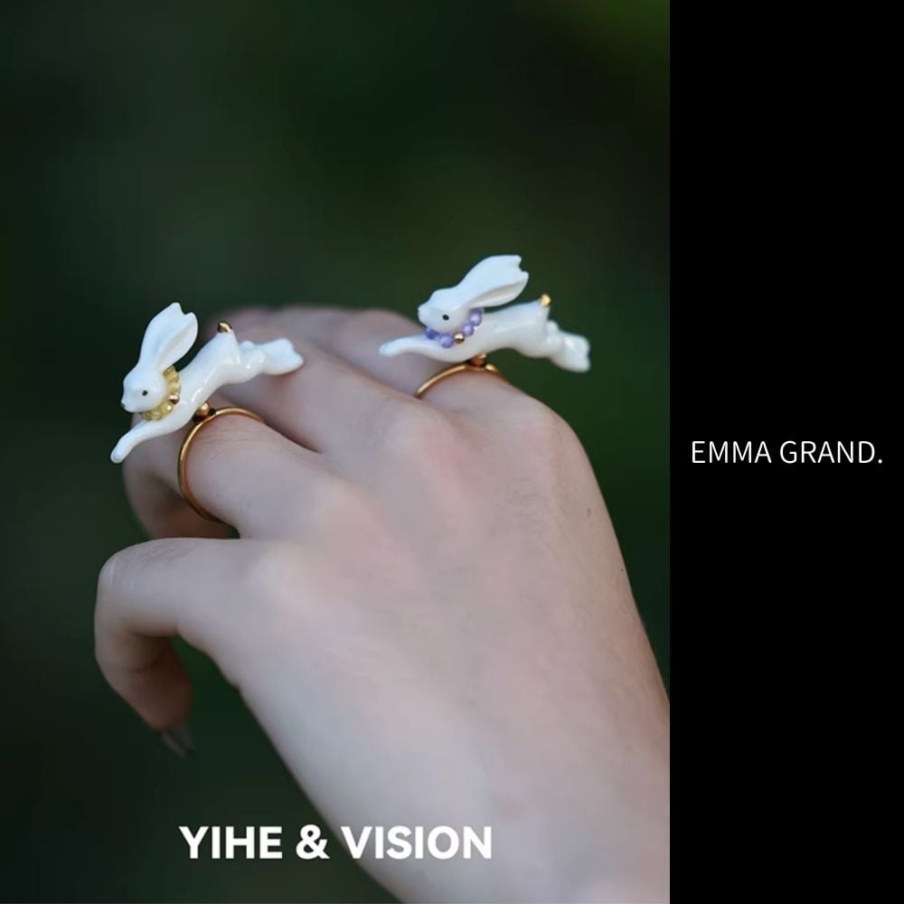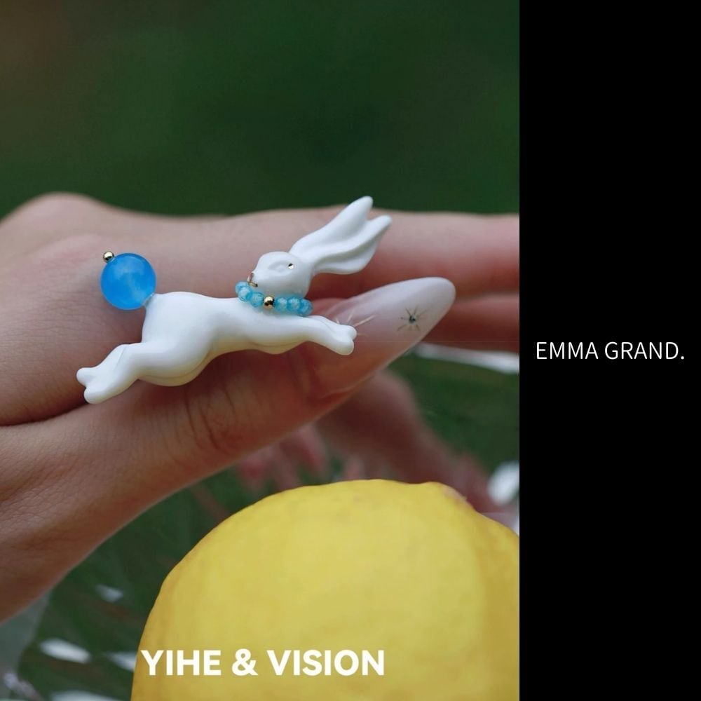 うさぎリング 白兎リング アニマルリング 動物モチーフリング うさぎアクセサリー 個性的リング ファンタジーアクセサリー アートリング 星モチーフリング EMMAGRAND