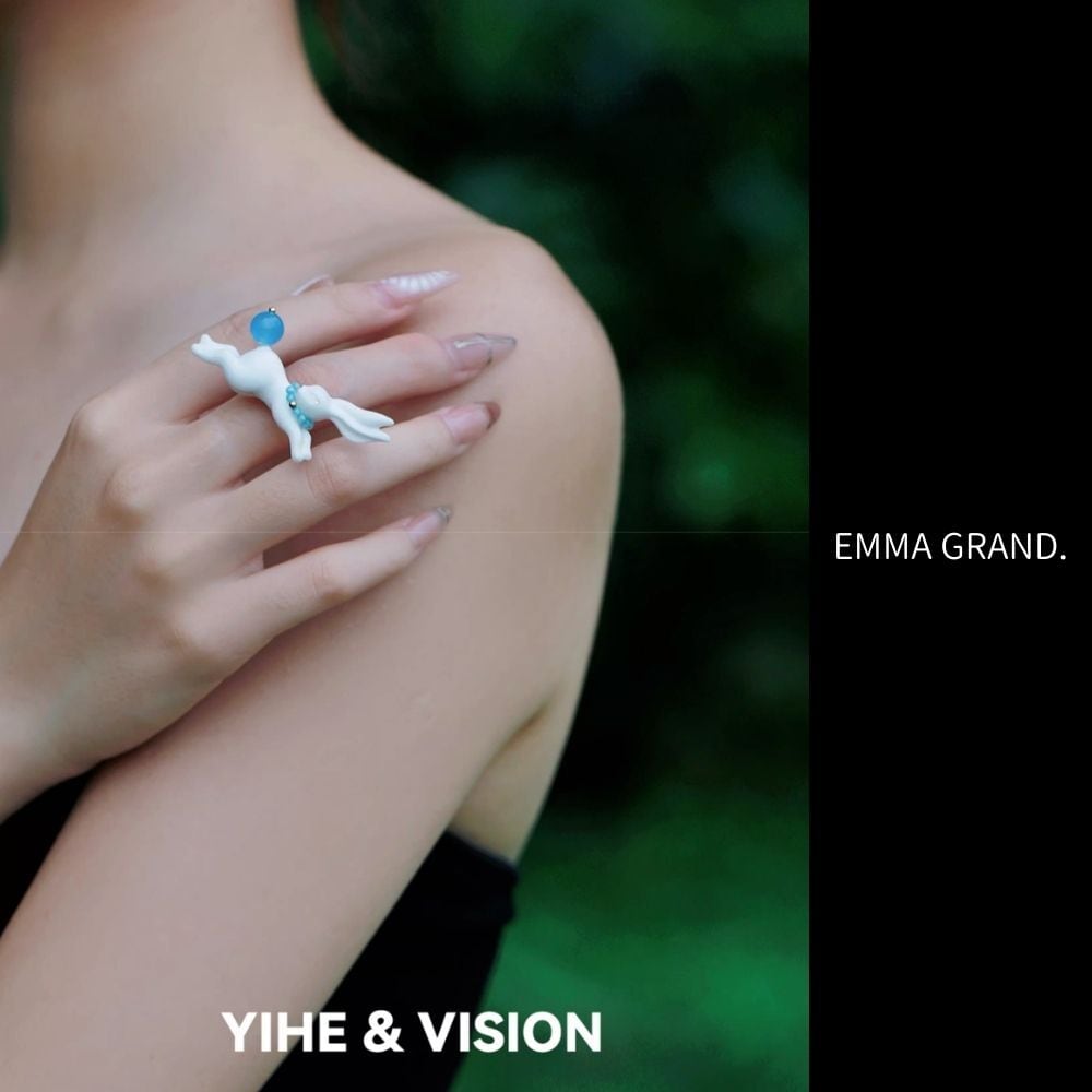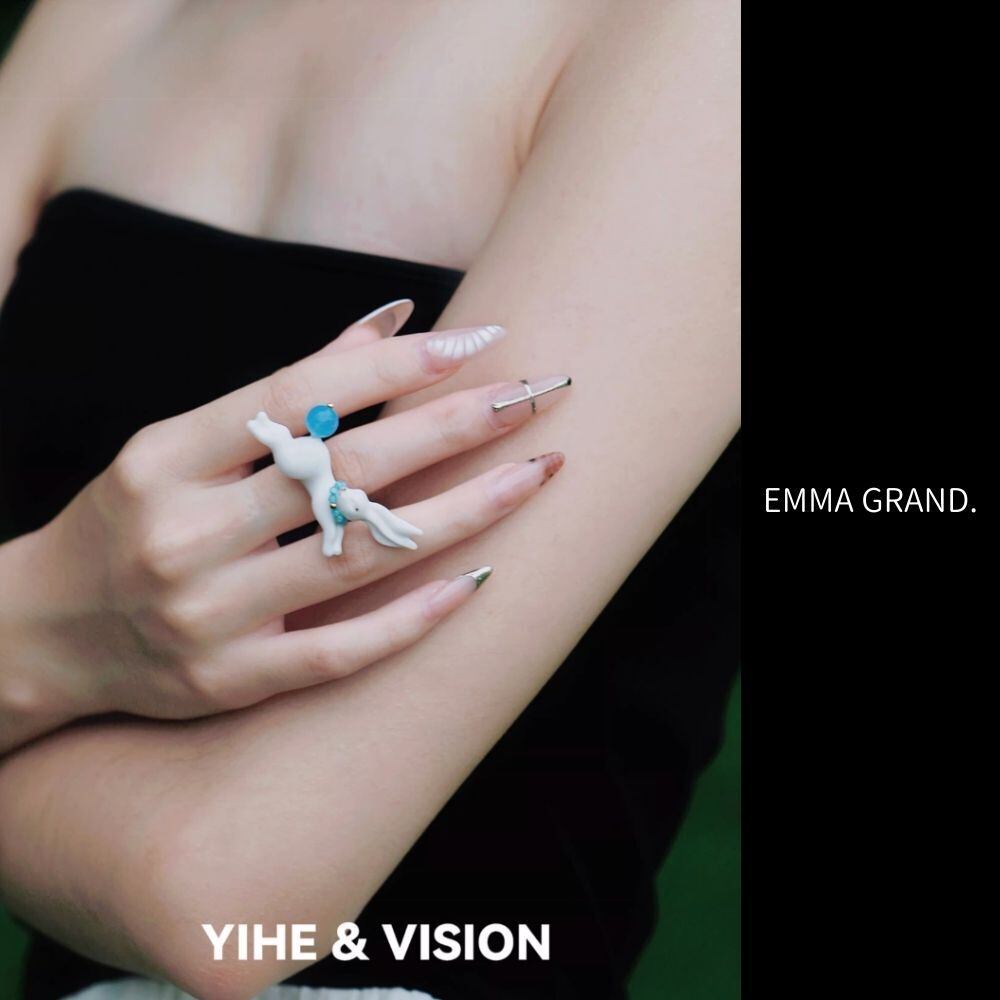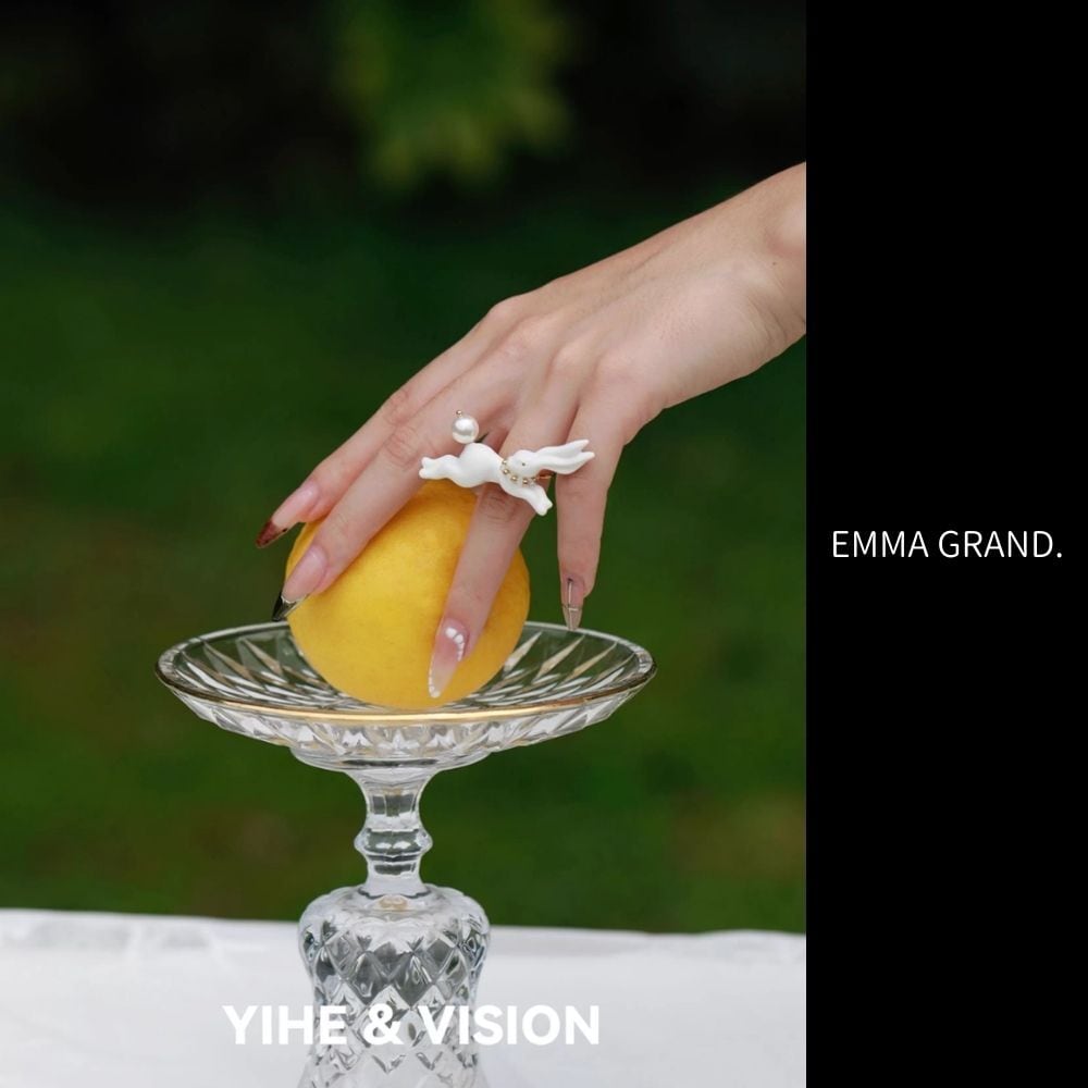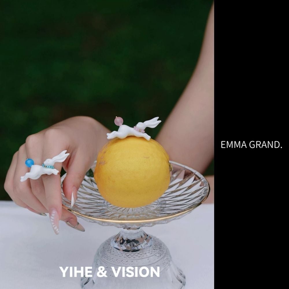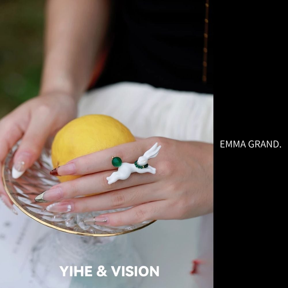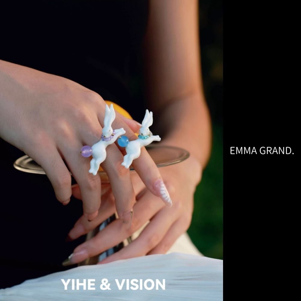 うさぎリング 白兎リング アニマルリング 動物モチーフリング うさぎアクセサリー 個性的リング ファンタジーアクセサリー アートリング 星モチーフリング EMMAGRAND