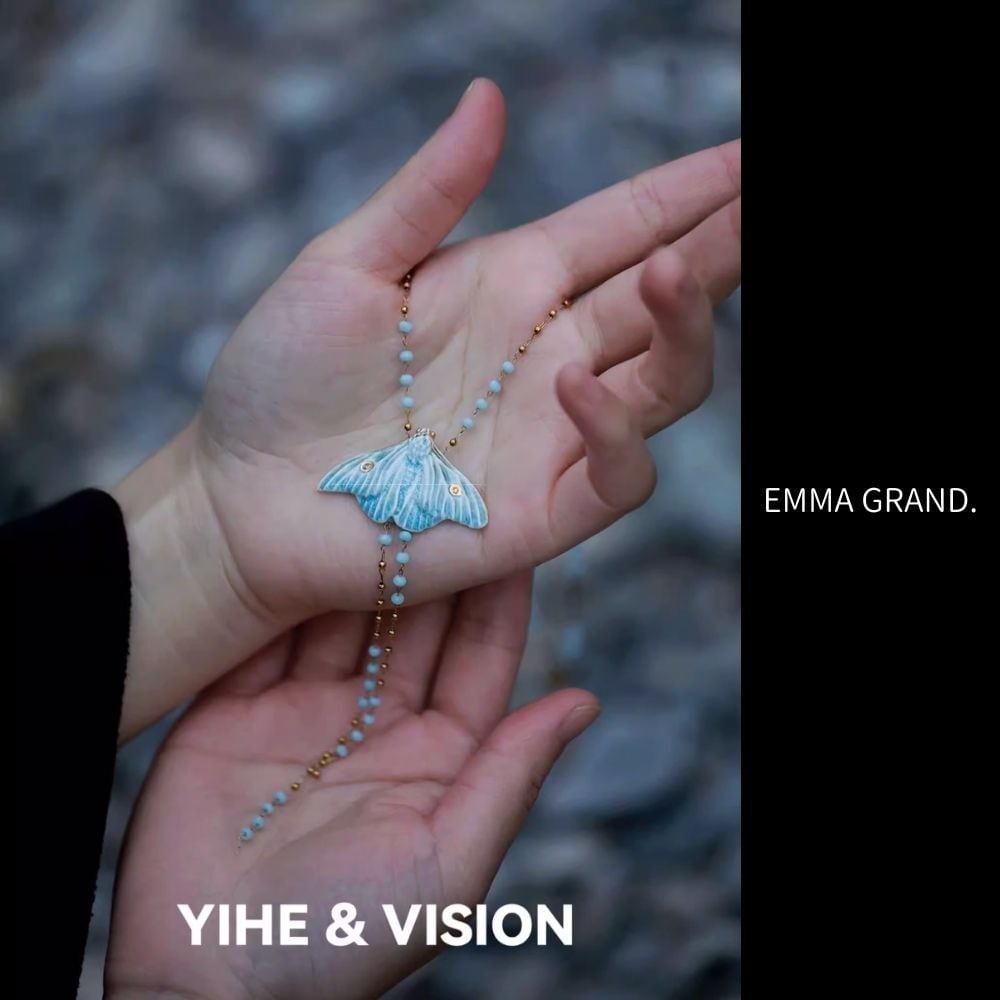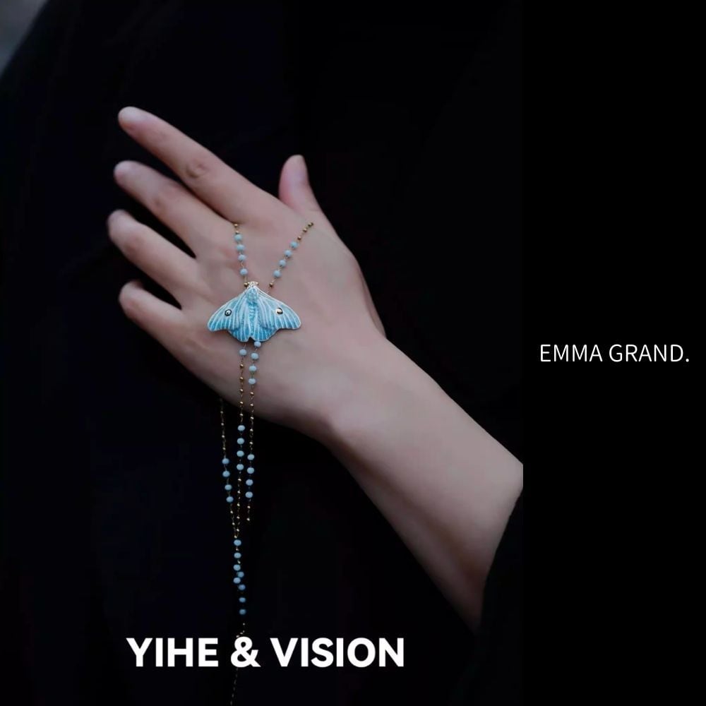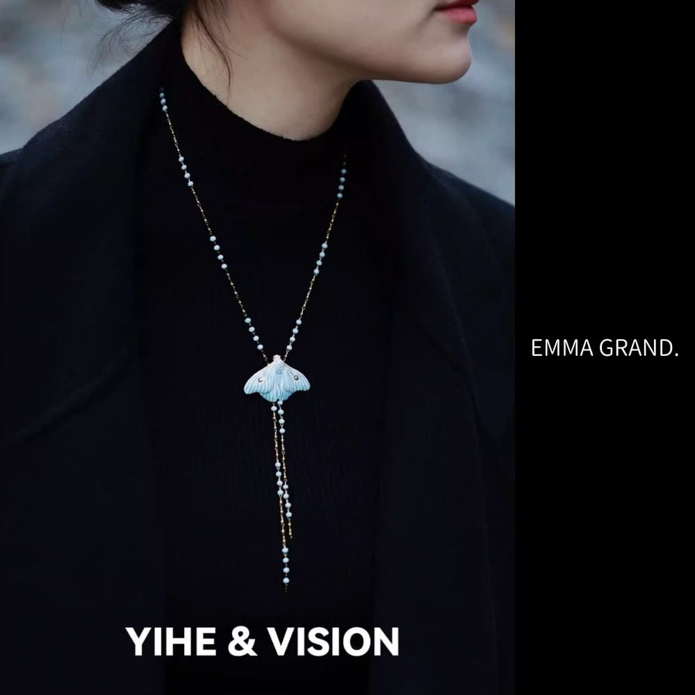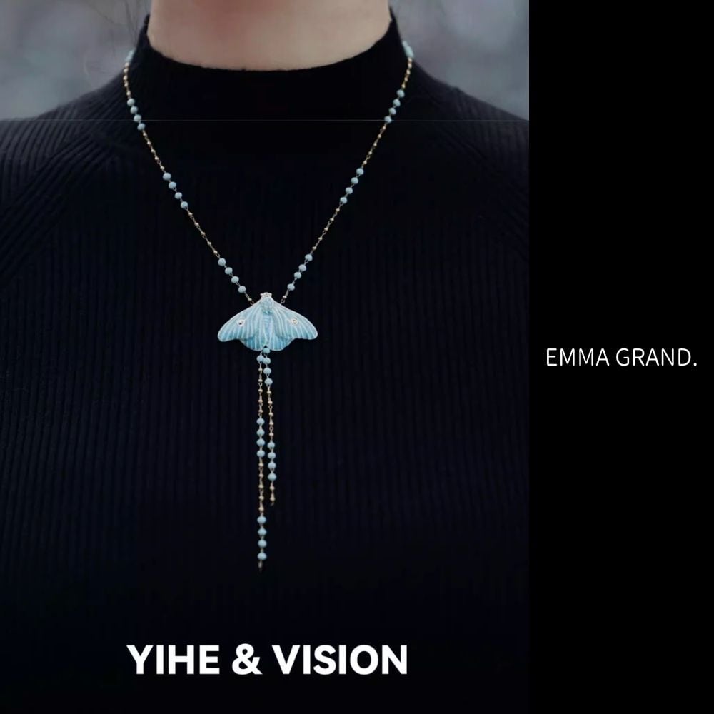 モスネックレス 蛾モチーフネックレス モスアクセサリー 動物モチーフアクセサリー 個性的ネックレス アートジュエリー 陶磁アクセサリー 幻想アクセサリー 夜モチーフアクセサリー EMMAGRAND