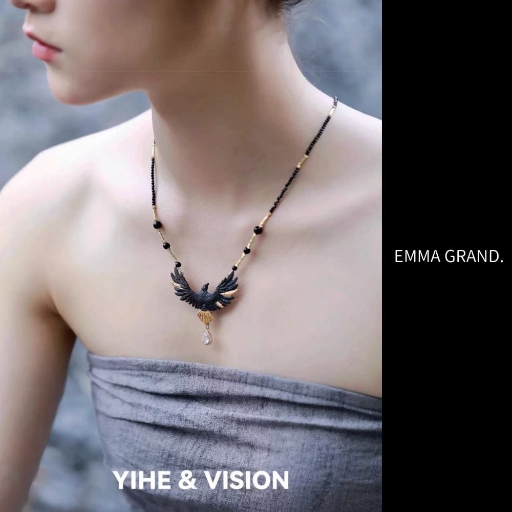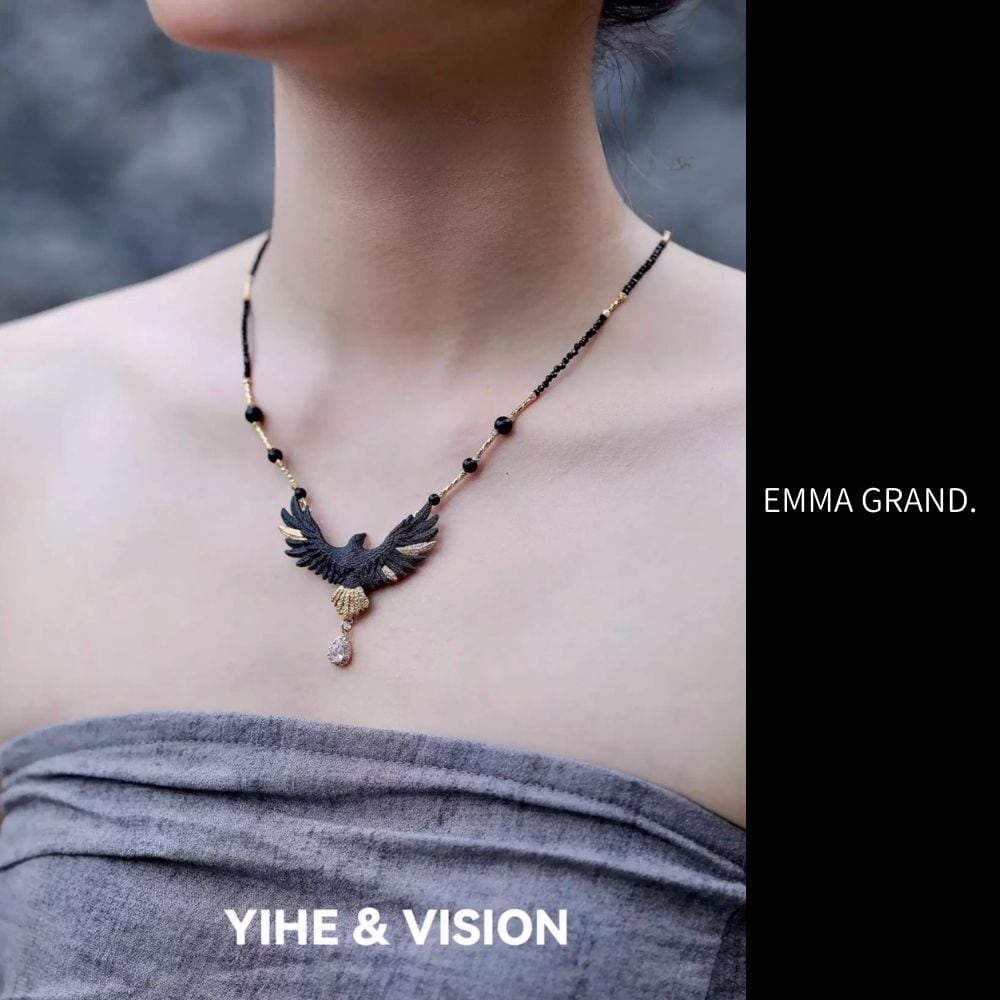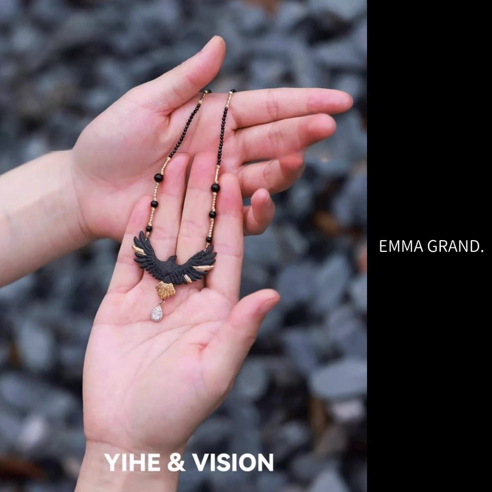 鷲ネックレス イーグルネックレス アニマルネックレス 動物モチーフアクセサリー 大鷲アクセサリー ブラックアクセサリー ゴールドアクセサリー 個性派ネックレス アートアクセサリー EMMAGRAND