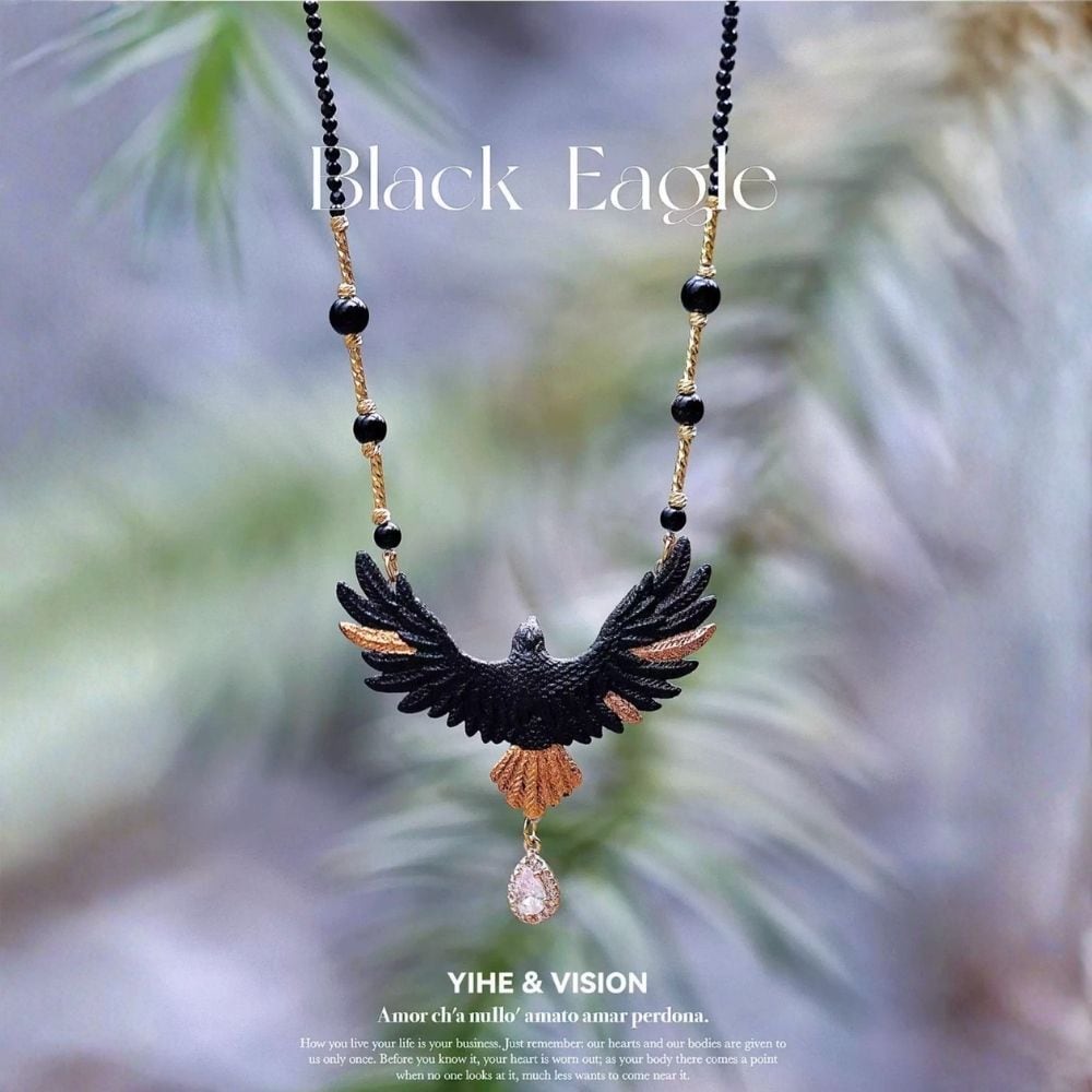 夜空を切り裂き自由を翔ける黒鷲のネックレス E00655