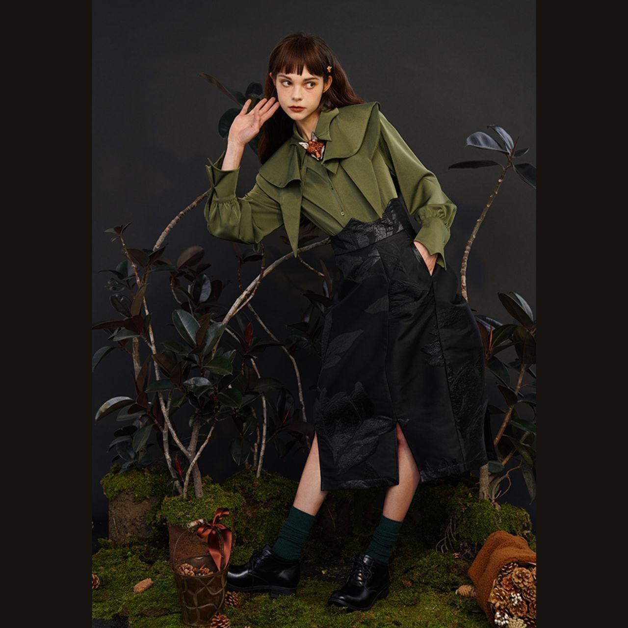 【ラスト1点】漆黒のフラワースリットスカート E00029