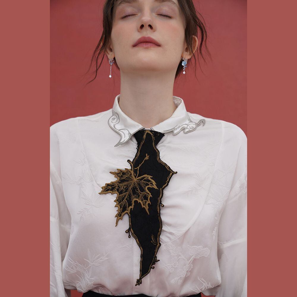 カエデ リーフ 歯 紅葉 秋 ネクタイ タイ ワンポイント パーティ イベントファッション オケージョン セレモニー デザイナーズファッション