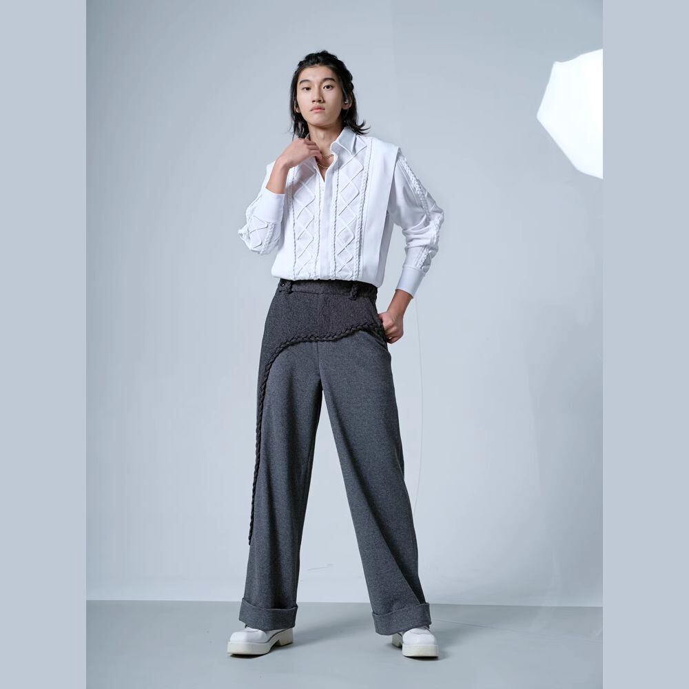 メンズ 男女兼用 白 シャツ イベント服 デザイナーズファッション 個性的 個展 アート服 オールシーズン おしゃれ 仮装 ハロウィン 長袖