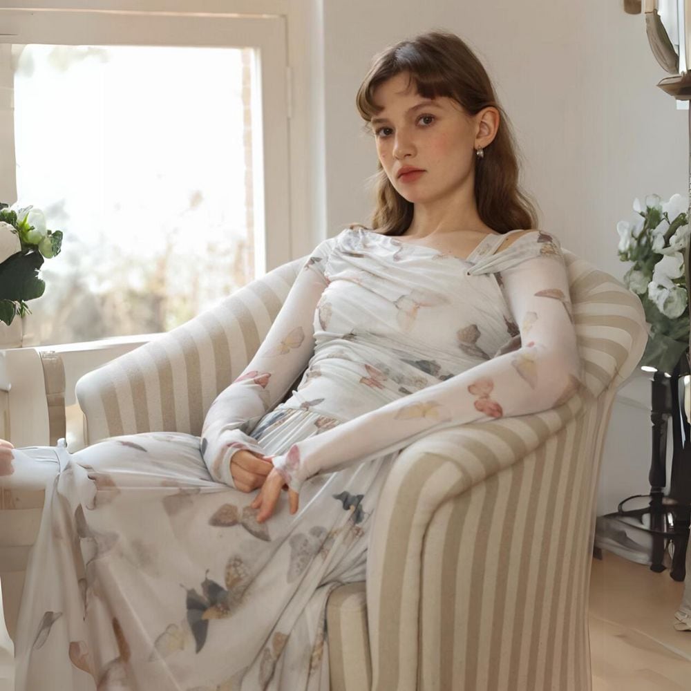 蝶が飛び回るワンピース