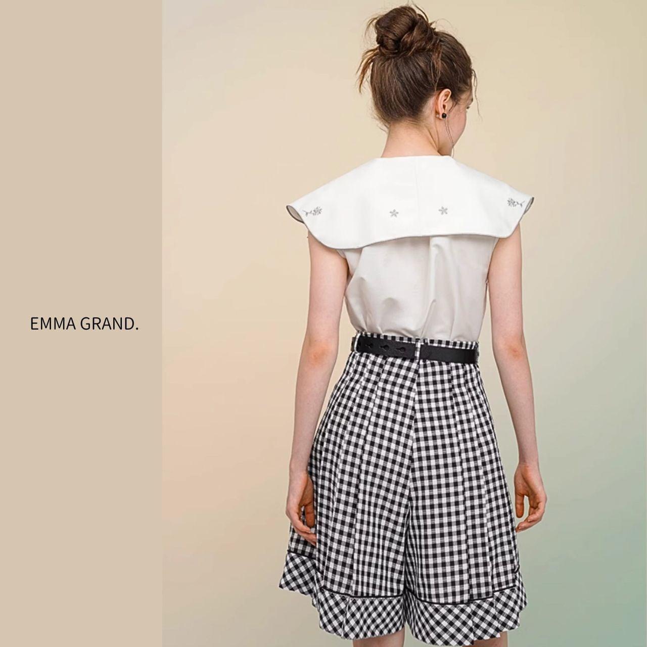バタフライ刺繍の大きな襟のブラウストップス E00437