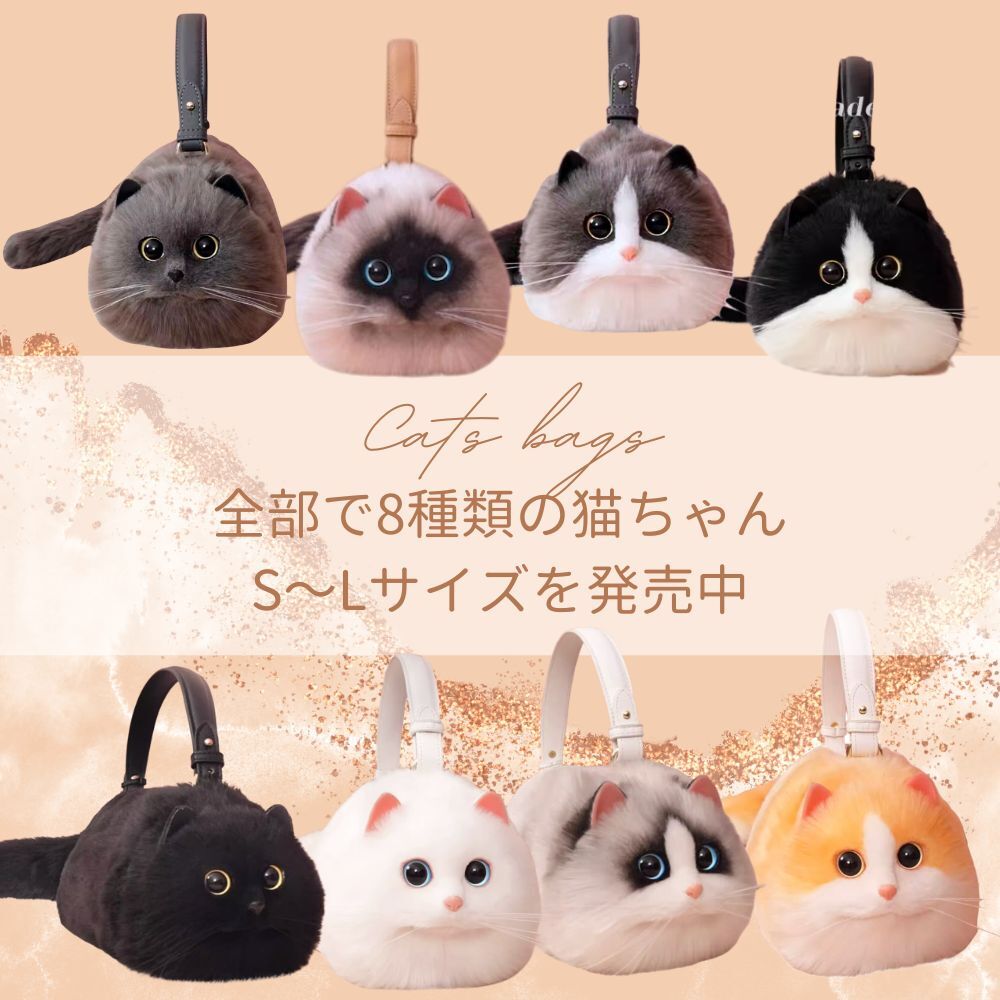 青い色のまんまるな目、ふわふわのしっぽとひげまで再現された猫バッグです。