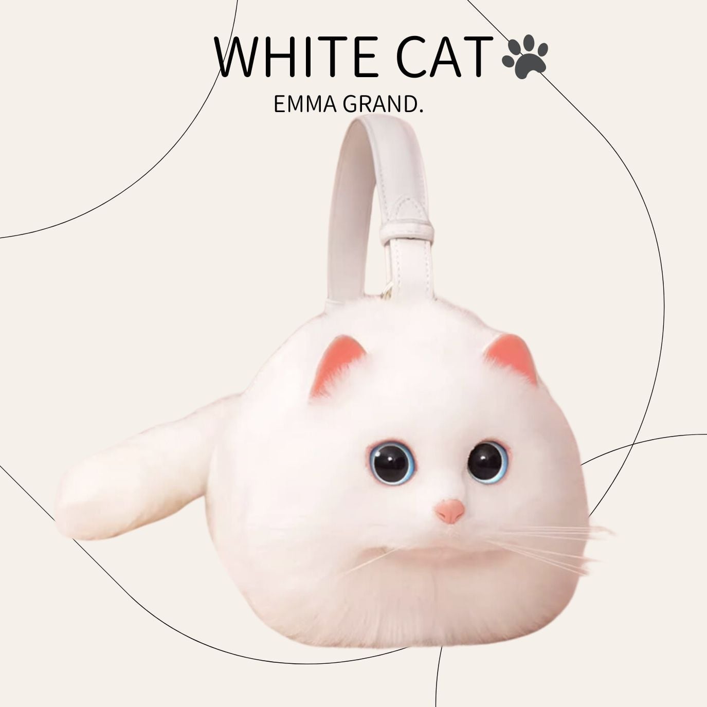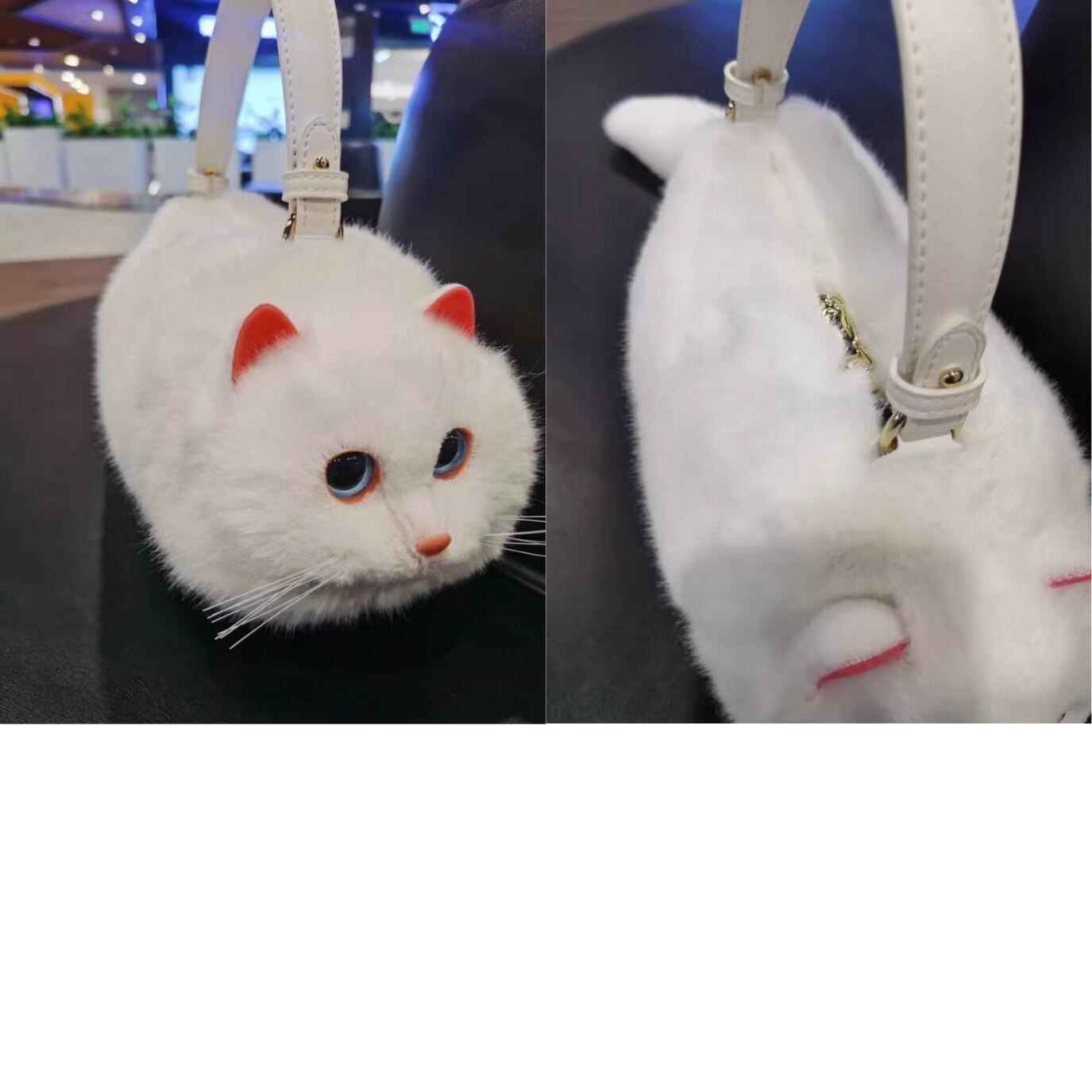 まるで白猫を本当に連れてるようなフェイクファーのカバン。